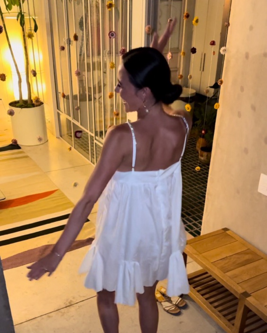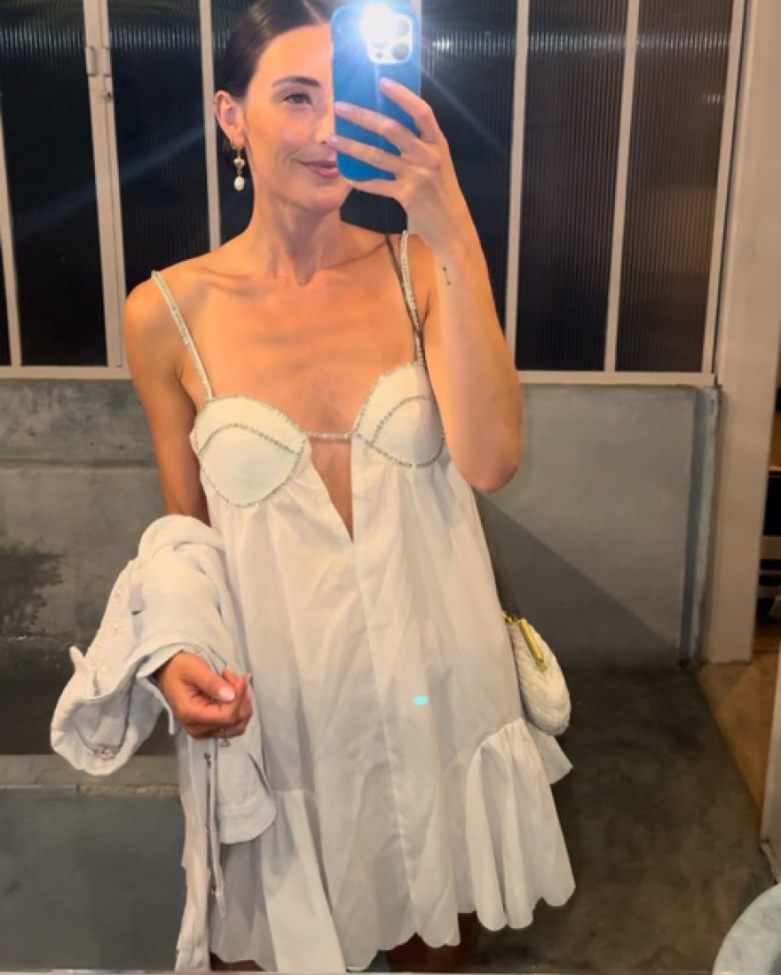 Micas V Neck Rhinestone Decor Mini Dress