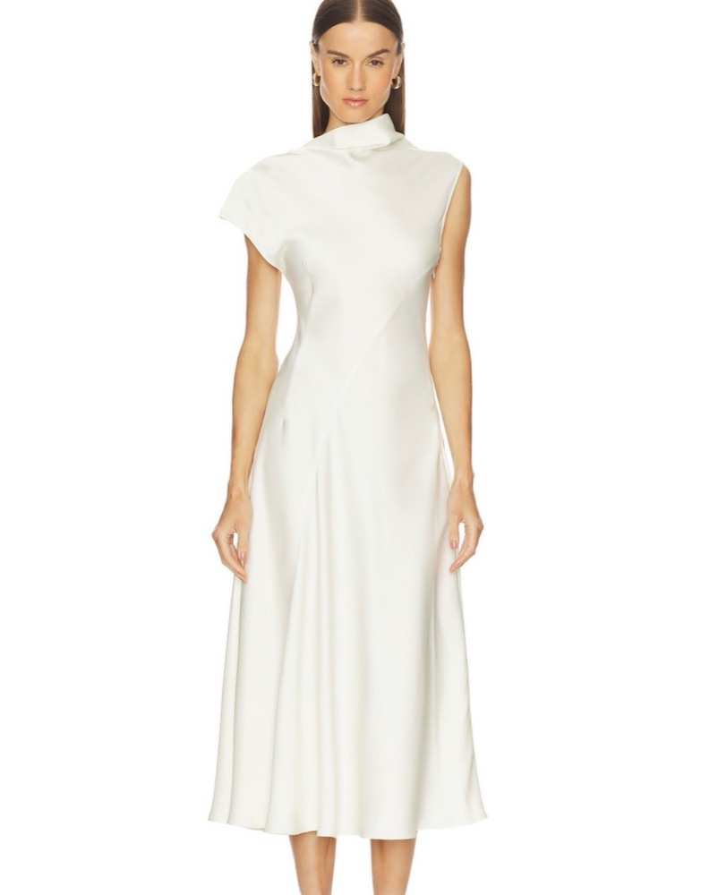 The Camila Coelho Ondina Midi Dress features a hidden side zipper closure and a hidden zipper closure at the neck. Ideal for graduation photoshoot or a bridal event as well like any other white dress code events.