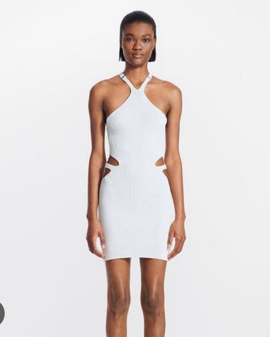 Flattery white bodycon dress with flexibility around waist, and neck. Made of stretchy material and gold color hardware: elegant, chic and sexy,suitable for goingout. Depending on your height, it can be short mini or a midi knee length dress. Can be dressed up or down, w/ blazer, leather jacket