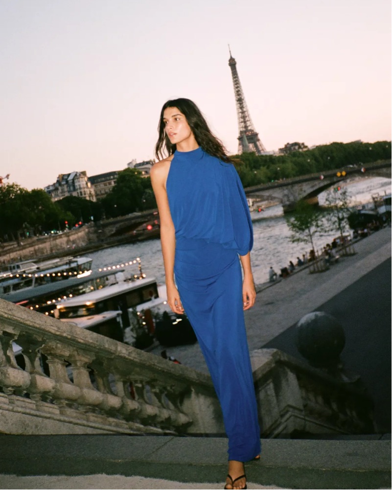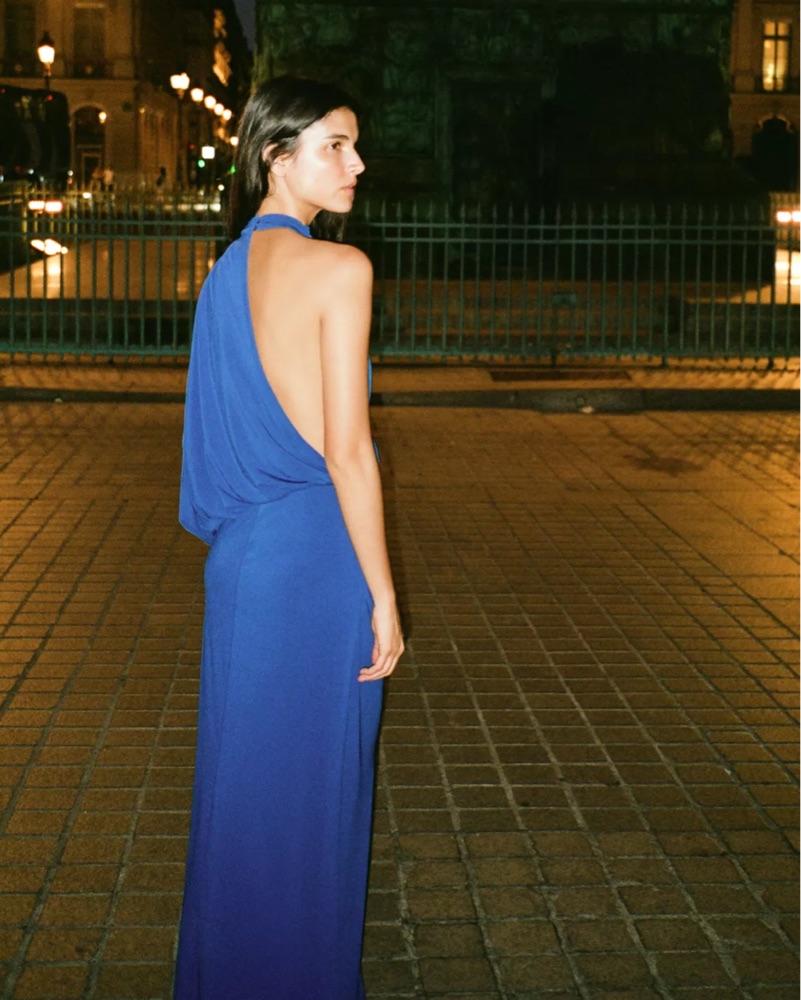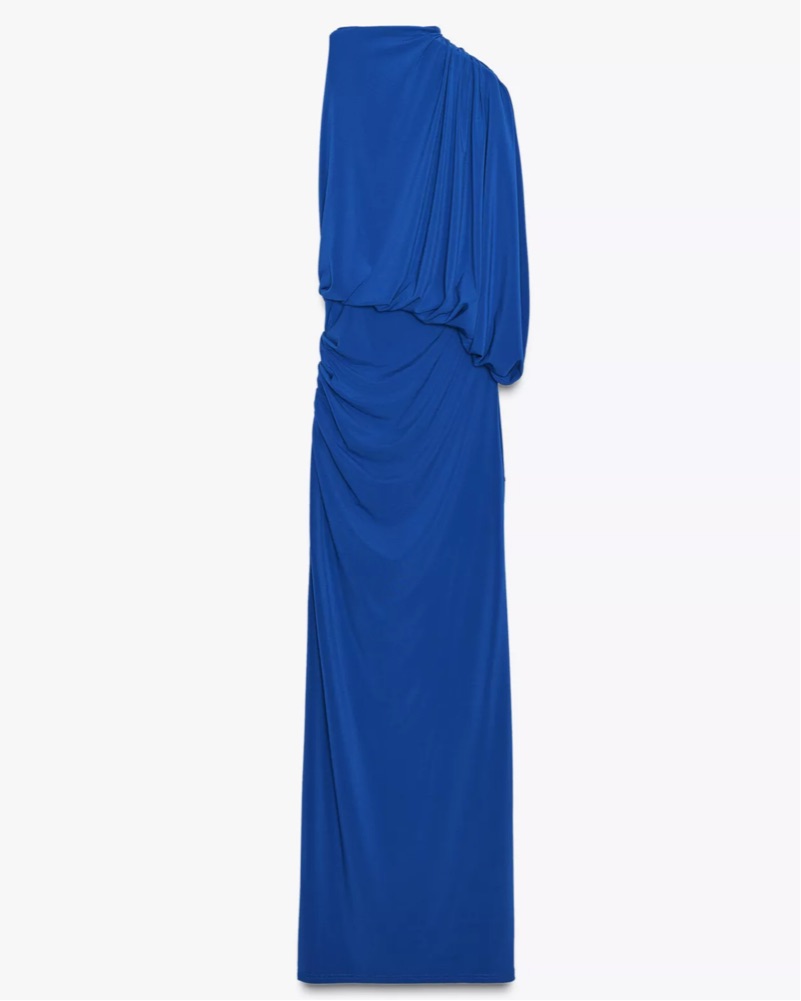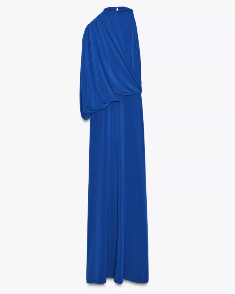 This blue maxi dress is perfect for a night out on the town. The draped fabric and high neckline create a chic and elegant look. Only worn once! Dry cleaning included in the price.