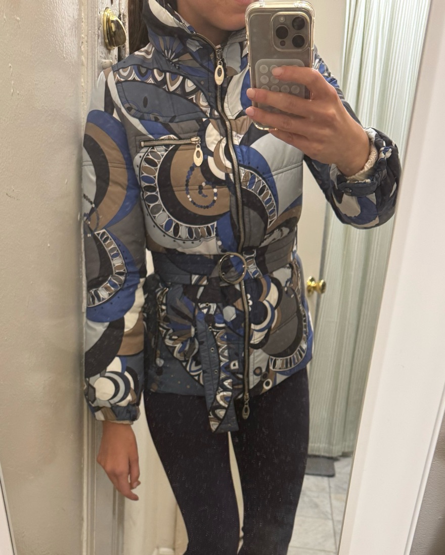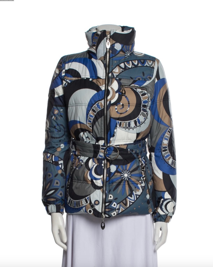 Emilio Pucci down jacket perfect for ski season and also all winter! Bust is ~ 38.75 in. Also has a hood!