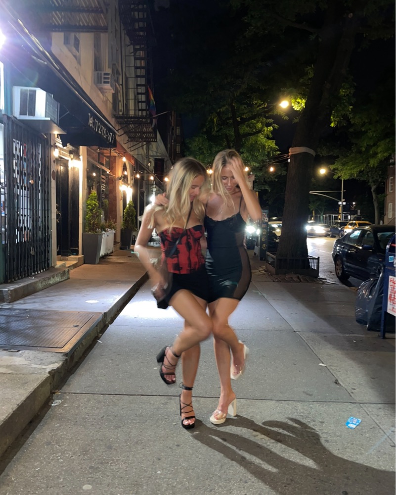 This sleek black mini dress is perfect for a night out. The form-fitting silhouette and lace detailing create a chic and elevated look.