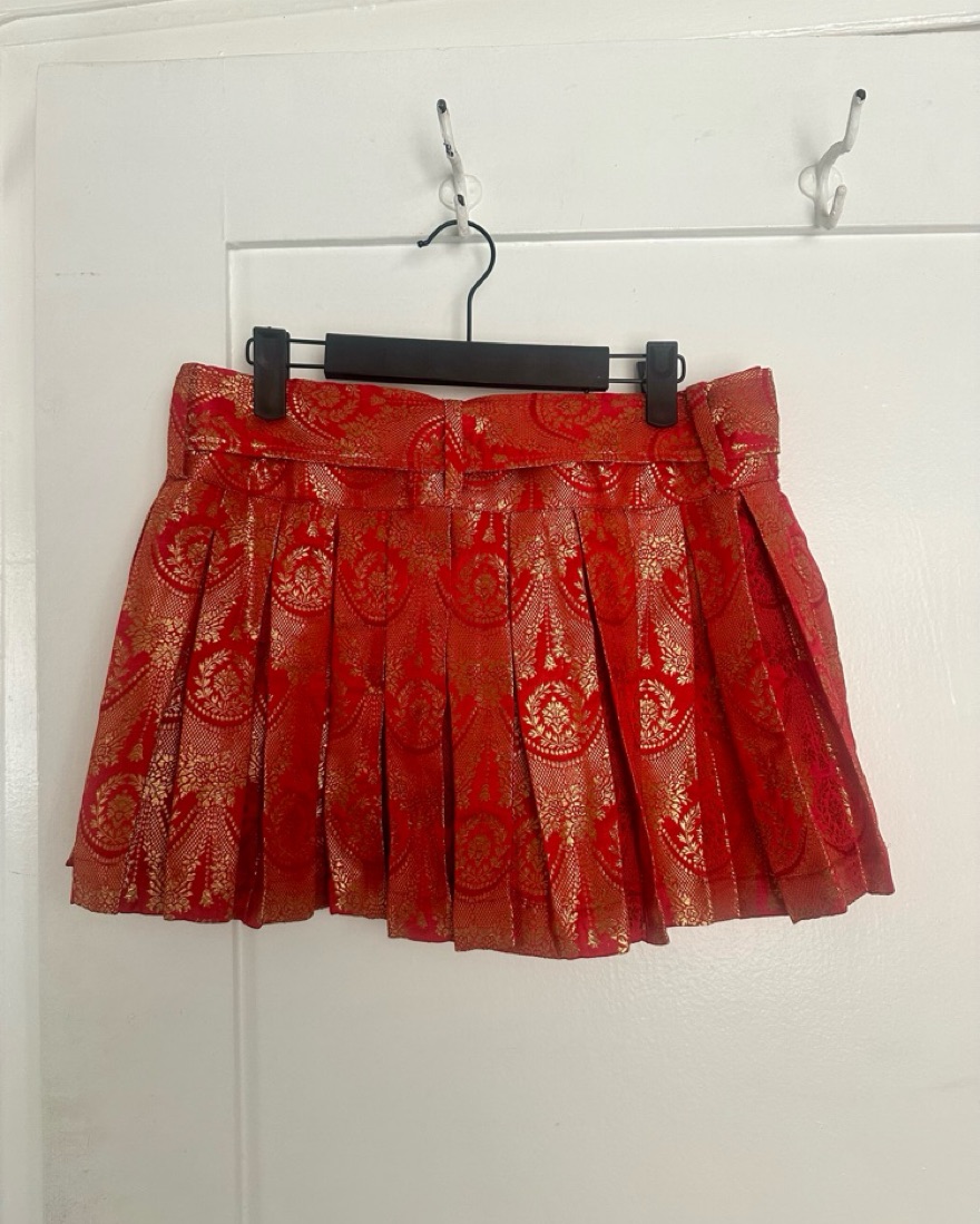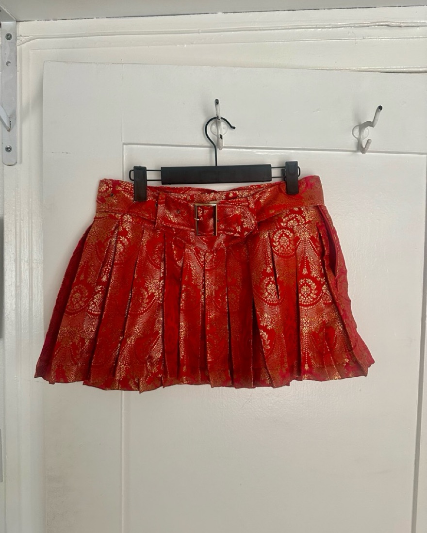 Svarini Red Pleated Belted Mini Skirt