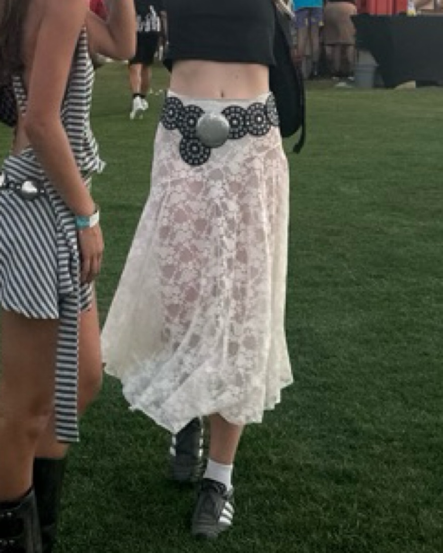 White lace skirt. White undergarment is attached. Perfect for festival season, bach parties, or summer! Please do not wash!