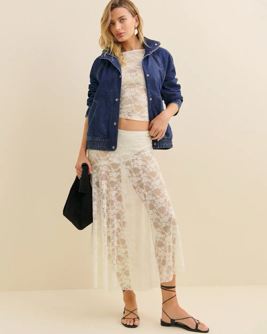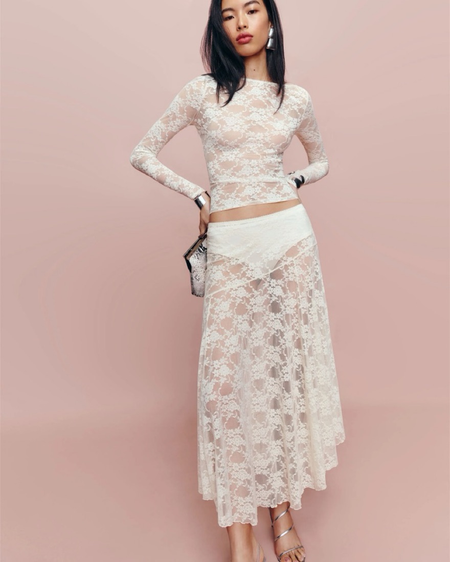 Reformation Mirabelle Knit Lace Skirt by Reformation - Pickle
