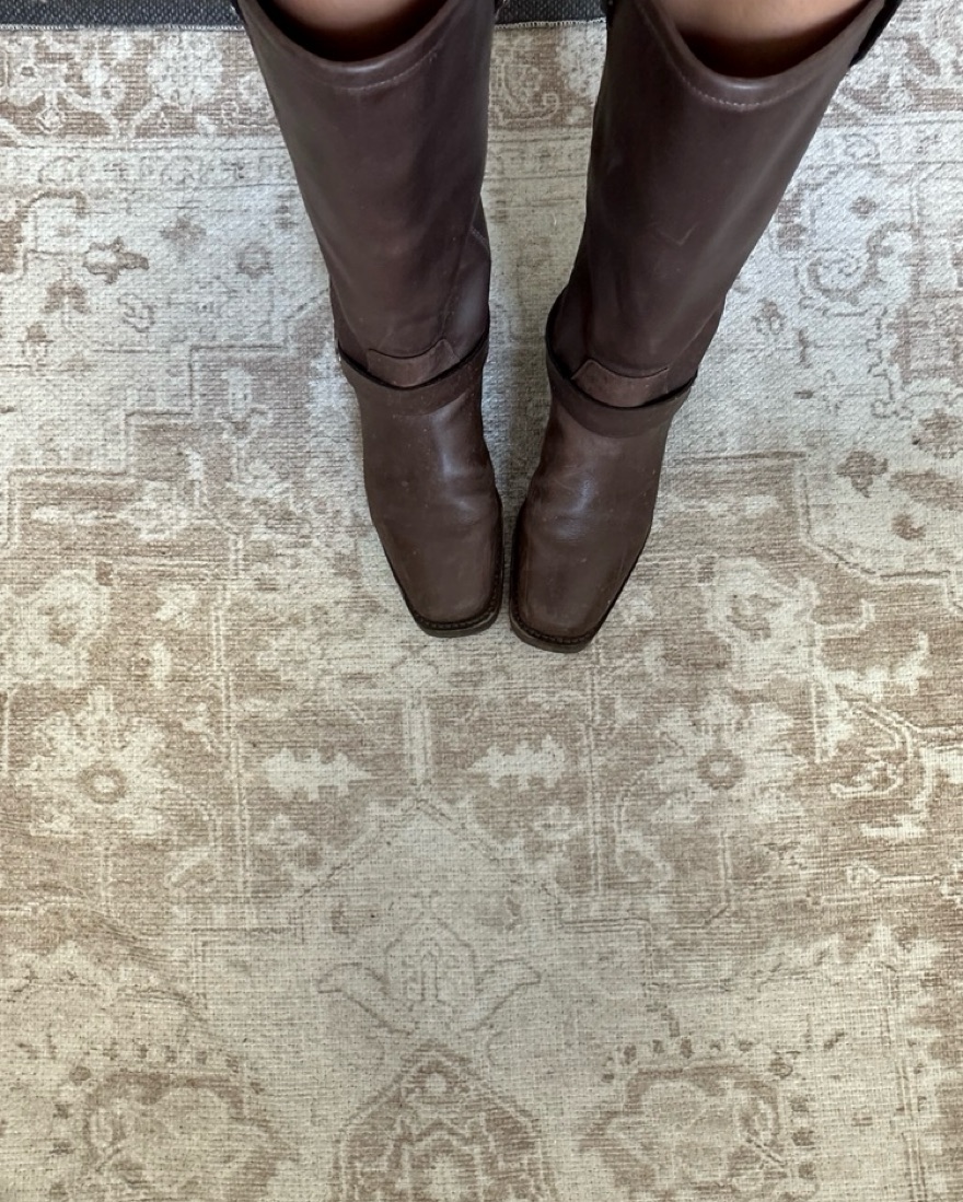 They ate in good condition. Not worn too much. A little scuffed (looks better). In the color ‘distressed brown’