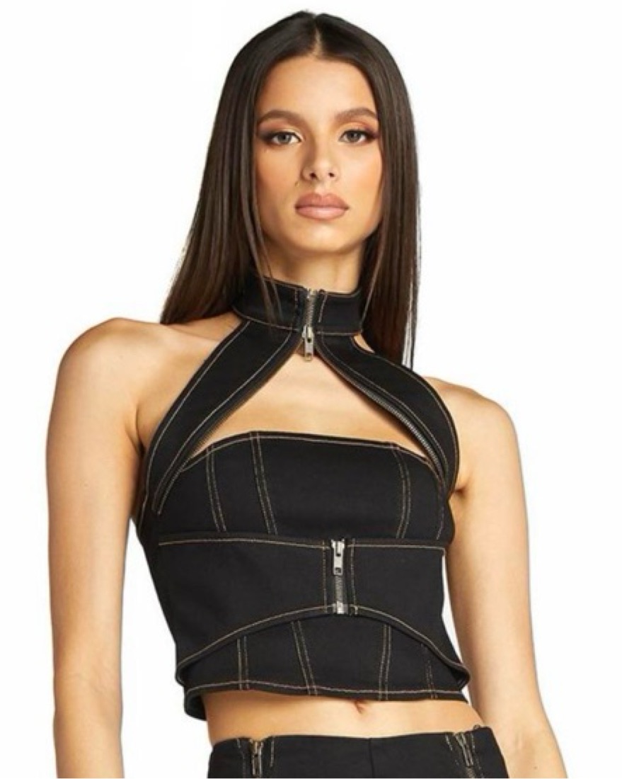 Unique I AM GIA dark blue denim top. Material is soft and stretchy, love this top for a sexy statement!