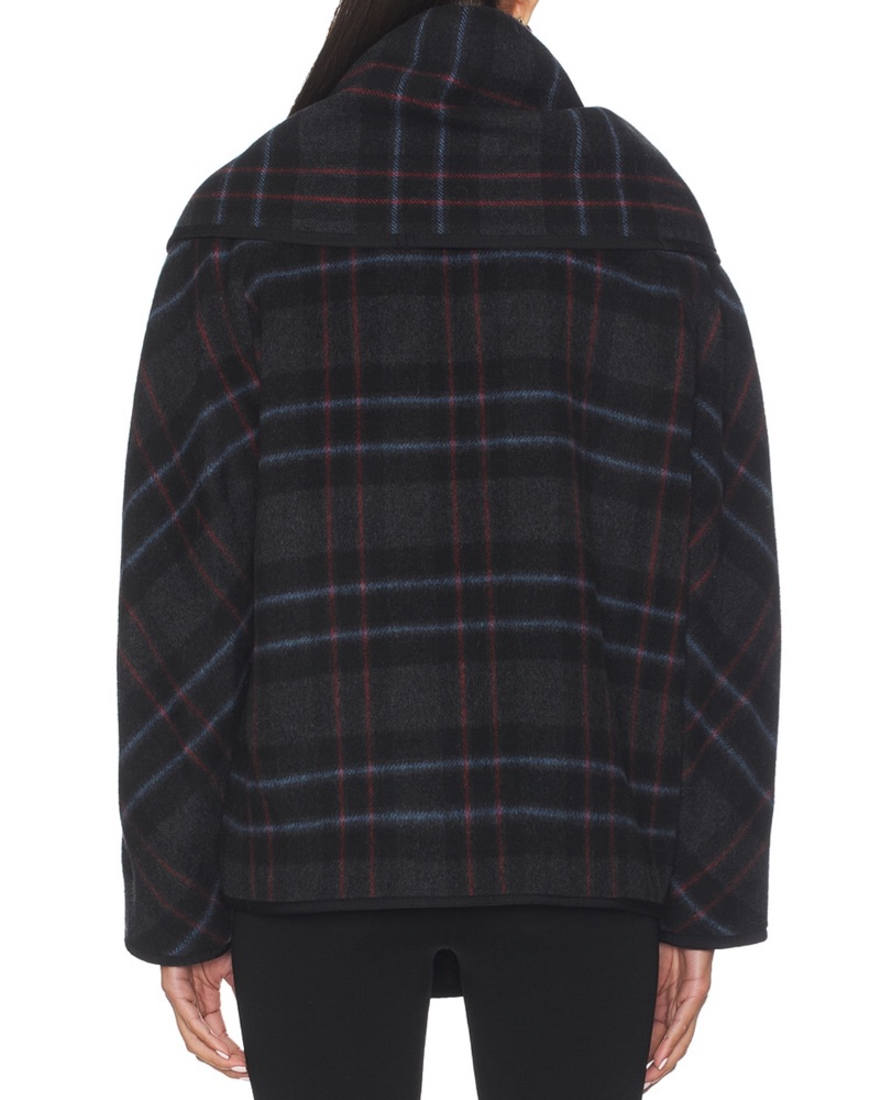 plaid coat with matching detachable scarf | black, blue, red | button front closure | patch pockets