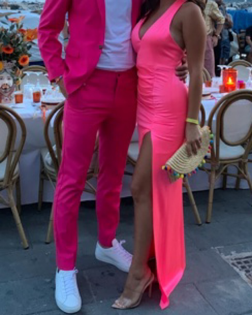 Hot neon pink sleeveless V-neck with exposed zip closure in back