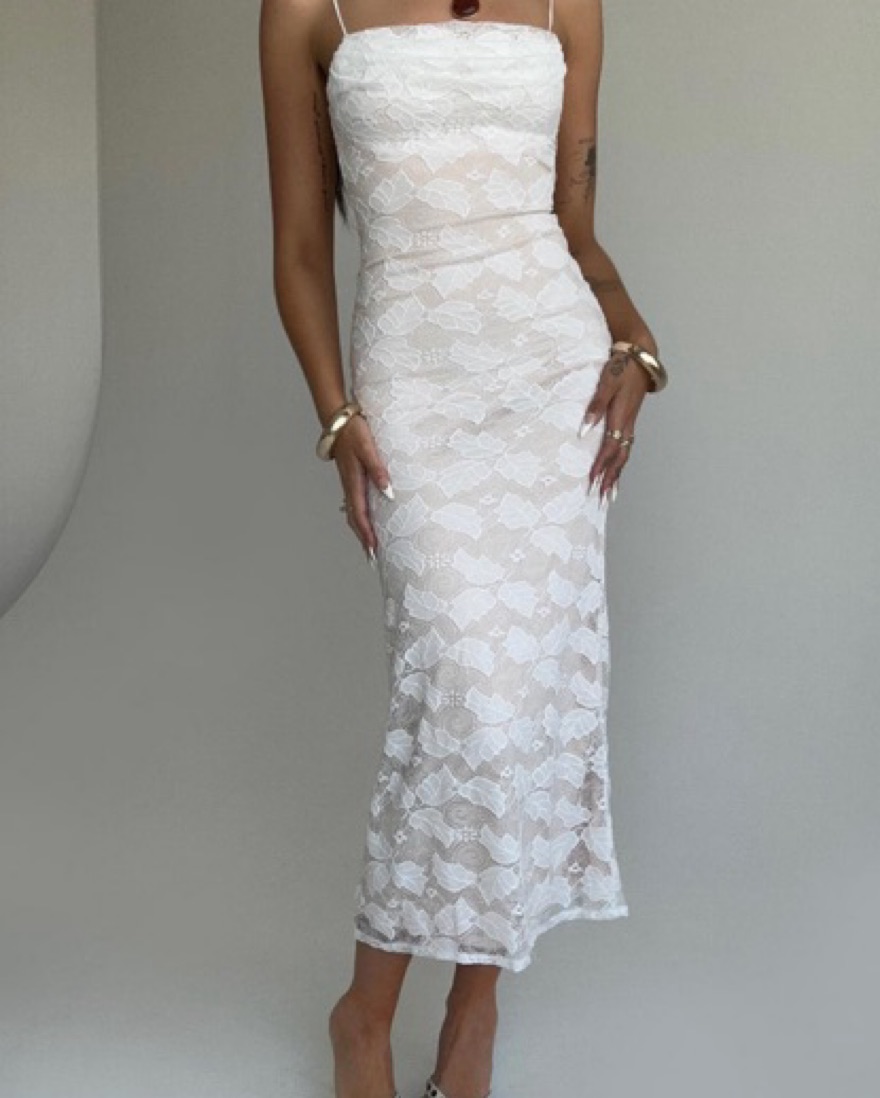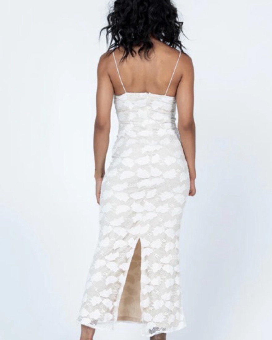 White lace formal dress from Princess Polly. Has a cream inside and a slit down the back.