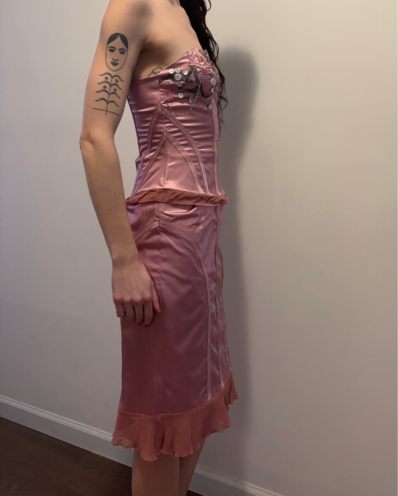 Beautiful piece, one of my favorites ever owned. Labeled as a 6 but is tailored to fit between a 2 and a 4. I am 32-25-34 and it is a bit loose on me.