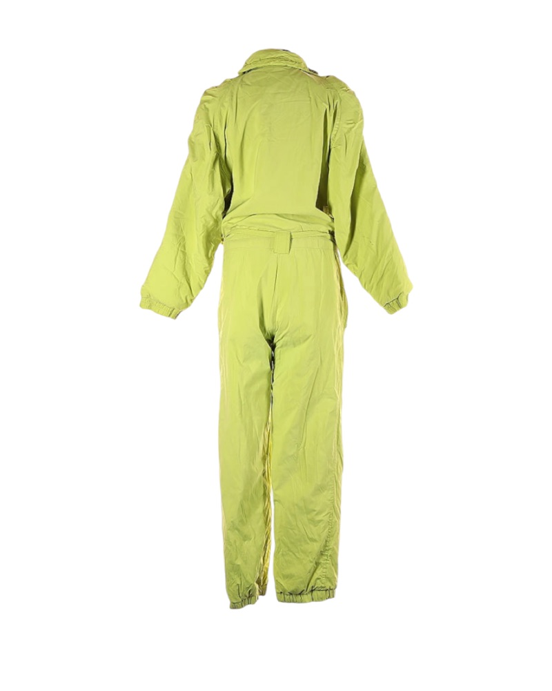 This bold and stylish lime green snowsuit is perfect for hitting the slopes in style. The waterproof and insulated fabric will keep you warm and dry, while the hooded design provides added coverage. pit to pit about 25"