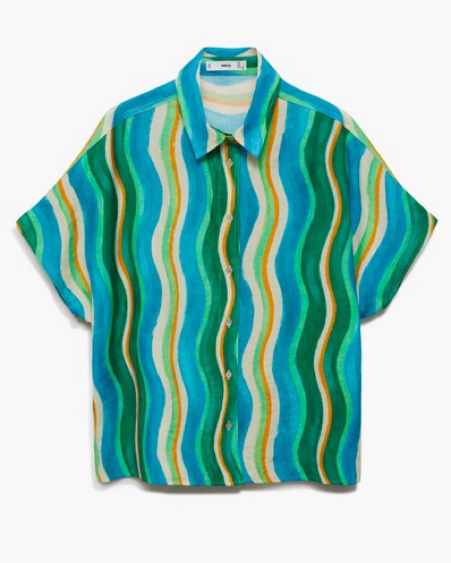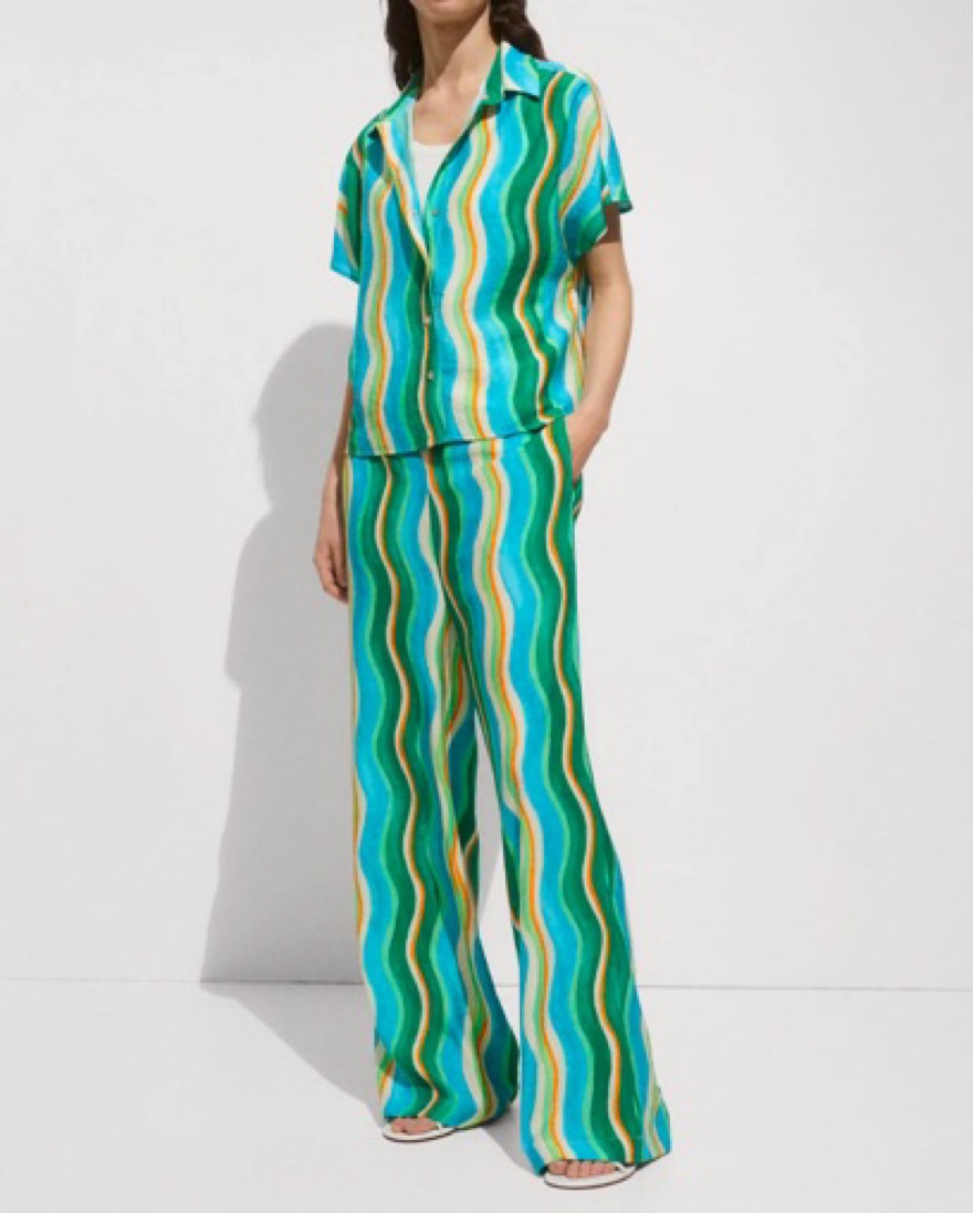 Mango Wavy Print Short Sleeve Button-Up Shirt and Pants Set