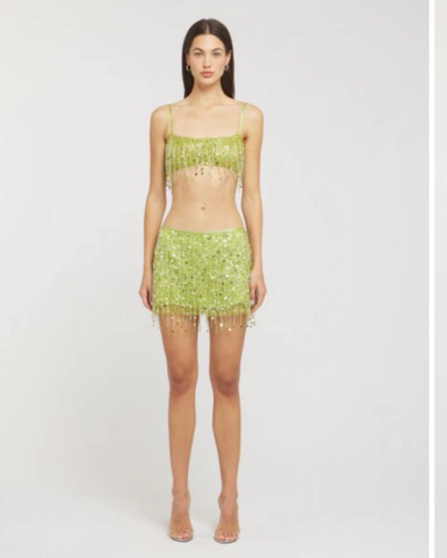 Asta Resort Yasmin Handbeaded skirt in chartreuse - size S