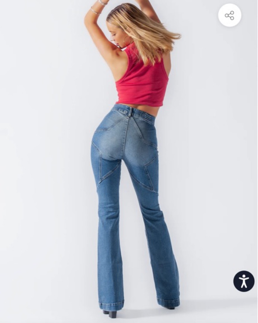 Flare denim jeans with star on the butt
