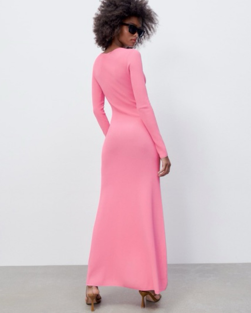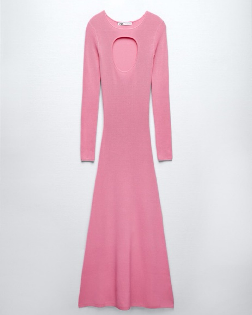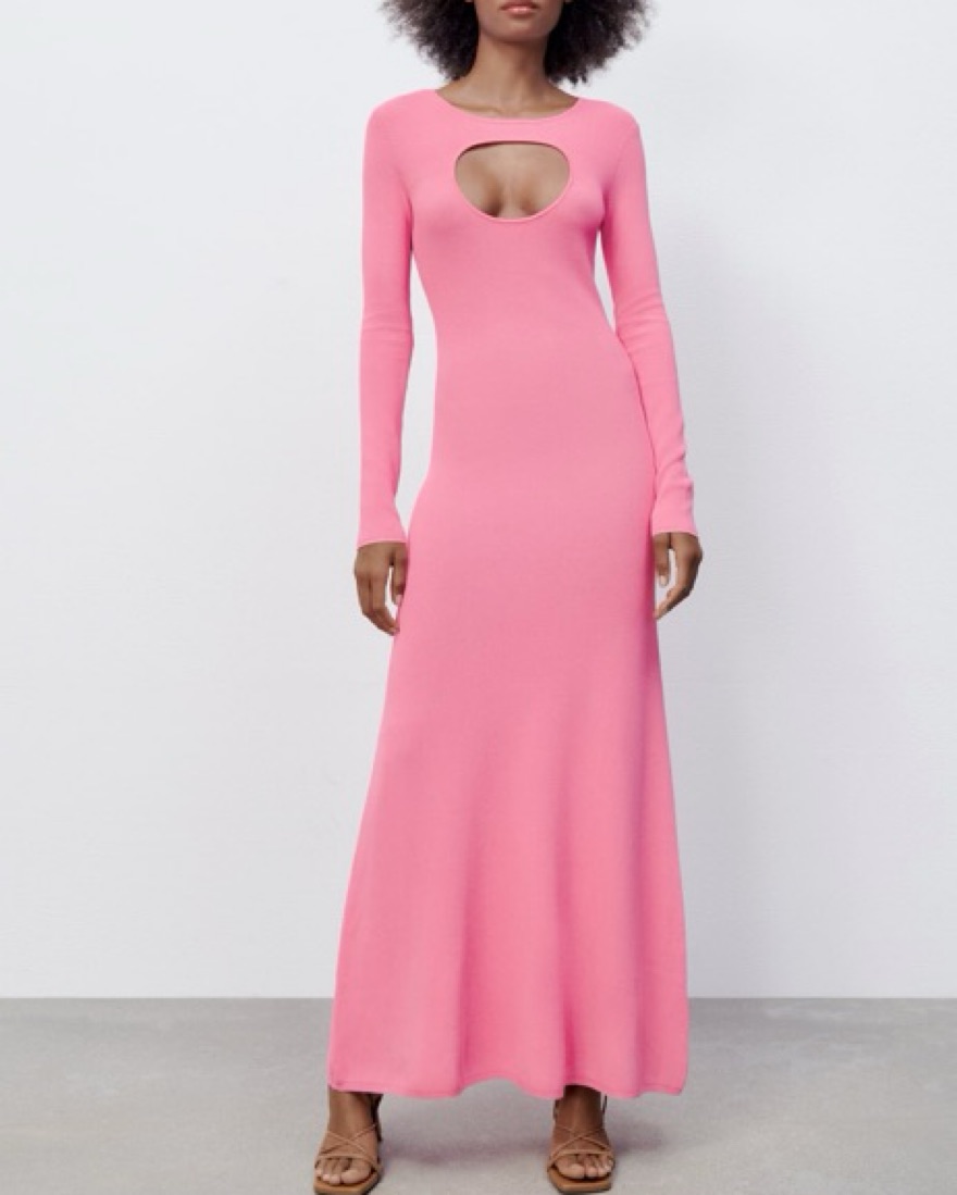 Zara Pink Cut Out Long Sleeve Maxi Dress, knit and thick!