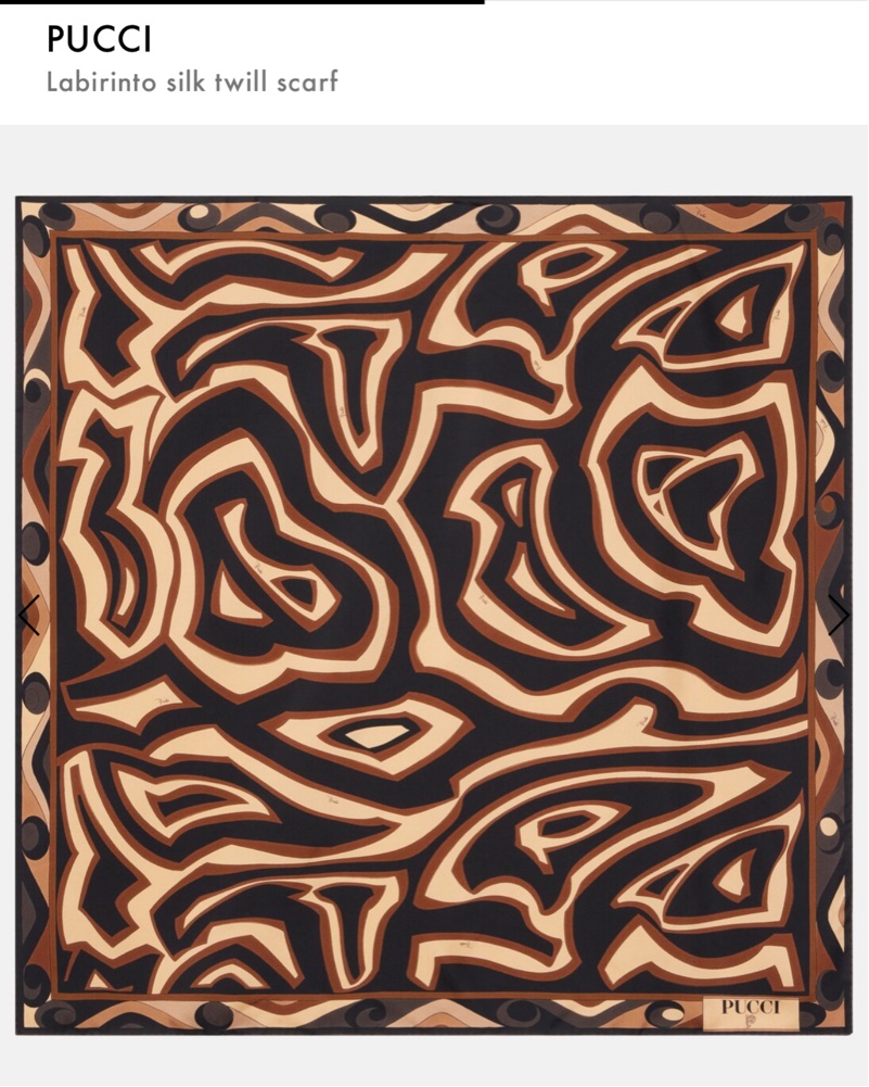 Labirinto print gold/black large twill. 100% silk. Can be worn as a top, head wrap, scarf, sarong, bag tie, etc.