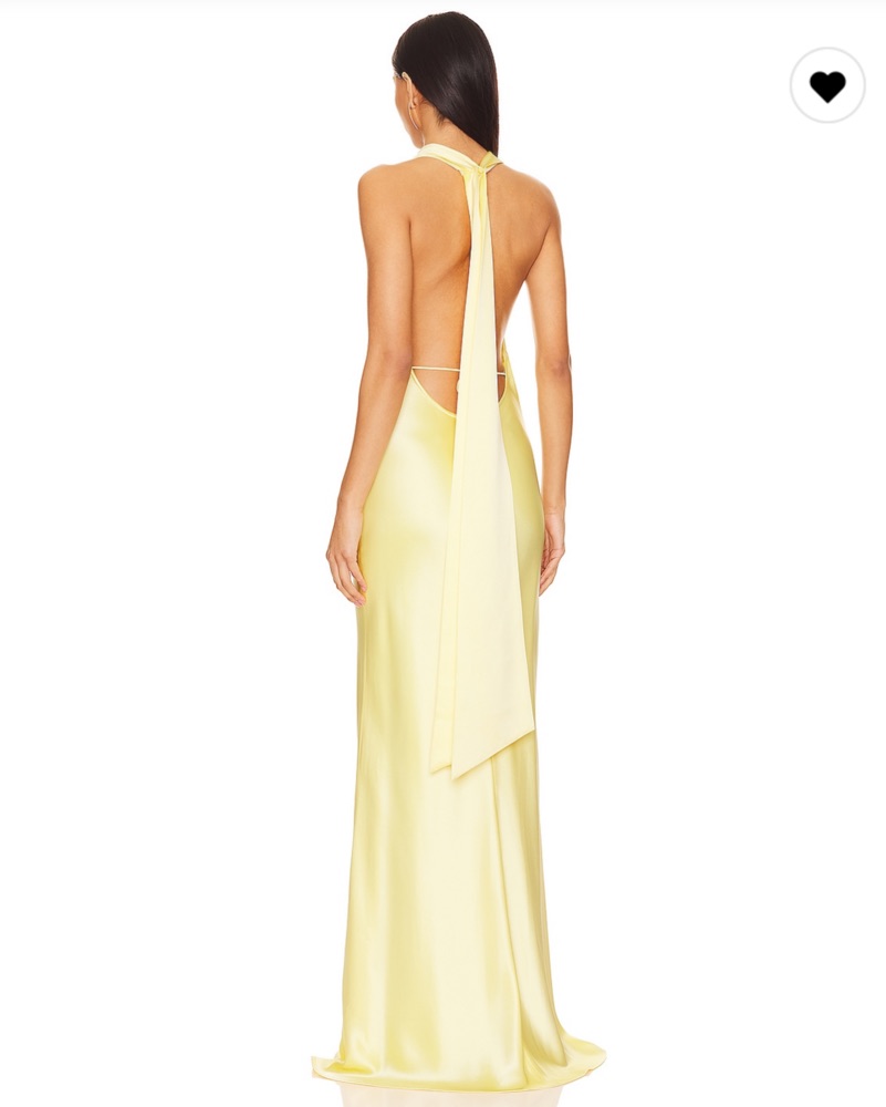 This stunning yellow halter gown is perfect for special occasions like weddings, galas, or formal events. The flowing satin material and sleek silhouette create a beautiful, sophisticated look. Altered slightly on the bottom to shorten - I’m 5’5 and wore a few inch heals. PLS HANDLE WITH CARE!