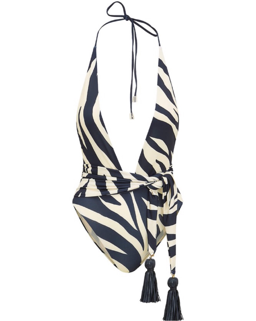 Inspired by the never-ending passion for animal print that runs through Rat & Boa's DNA, Constanza has a daring plunge neckline and a waist tie that comes with detachable leather tassels, ready to be worn your way. Flawless and flattering, she's not for the faint-hearted
