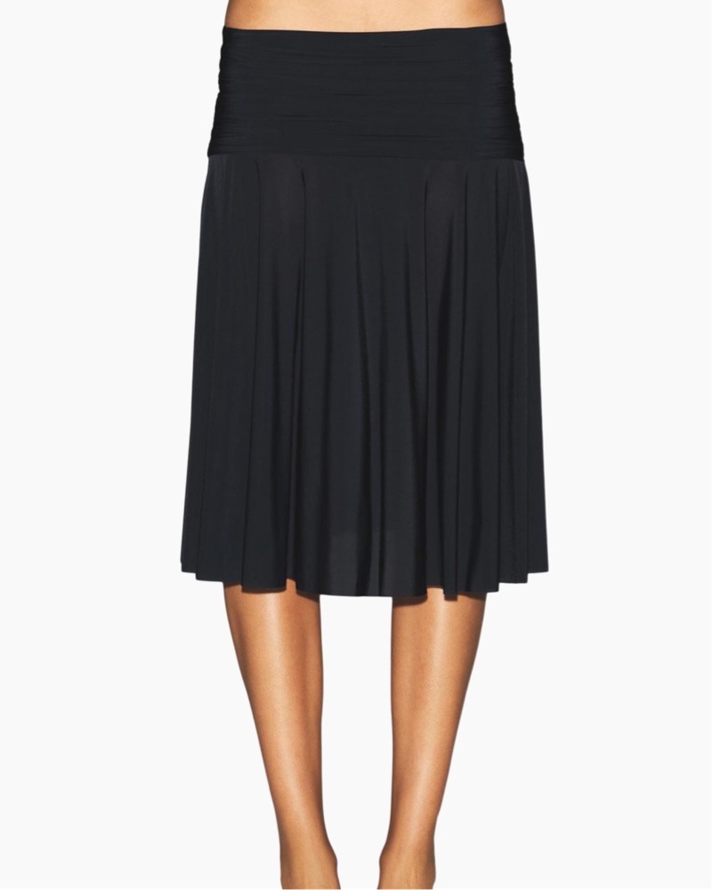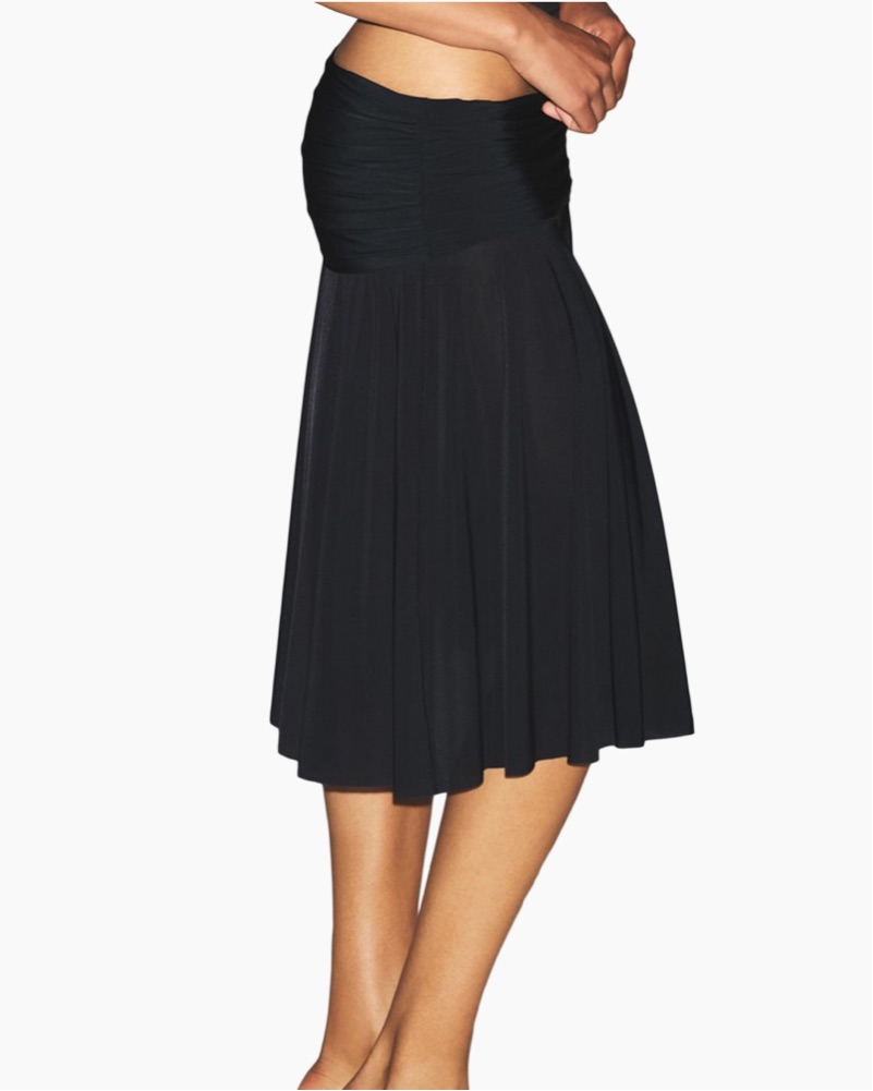 This A-line midi-skirt is crafted from a lightweight, stretchy sheer fabric complete with an elastic, fixed foldover waist with ruched detailing. Super comfy and flattering!