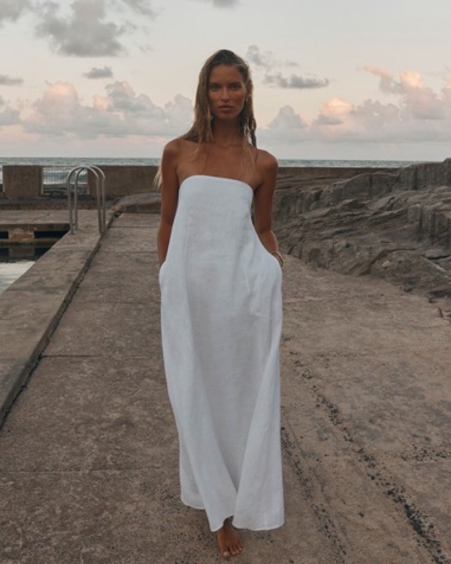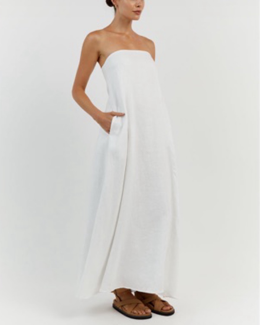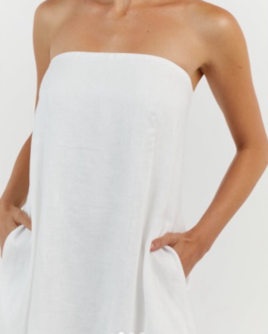 Dissh Karney White Linen Strapless Dress