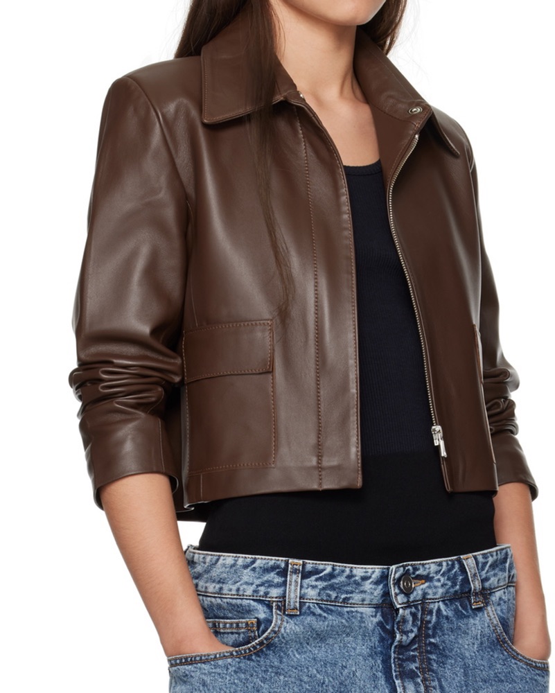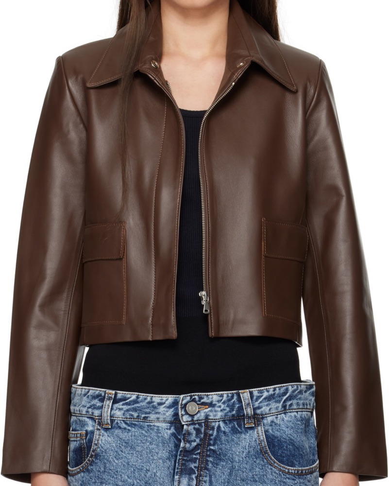 $1290 Nour Hammour Brown Leather Jacket