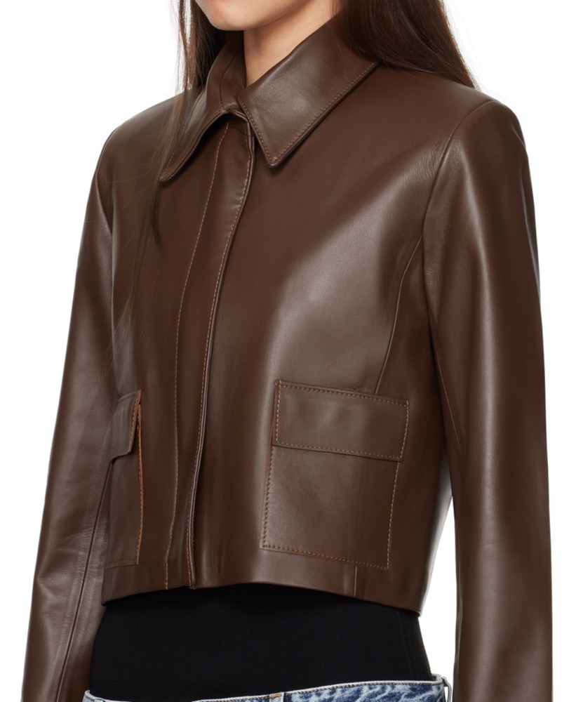 $1290 Nour Hammour Brown Leather Jacket by Nour Hammour - Pickle