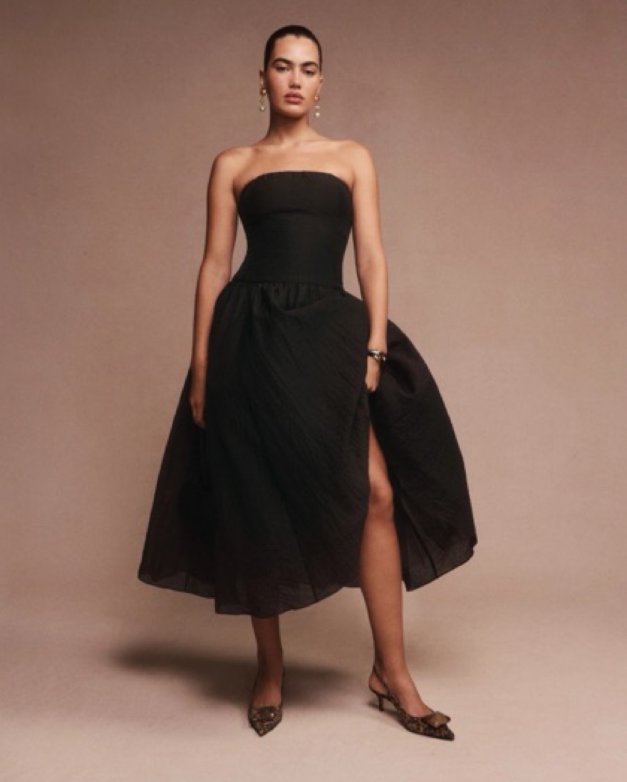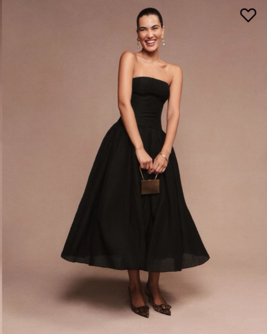 Super chic black dress with fitted bodice and full skirt. Truly the perfect blend of trendy and classic. Features a straight neckline with tulle lined skirt. I wore this to a wedding recently and was complimented by women and men of all ages. Perfect for your next wedding or formal event.