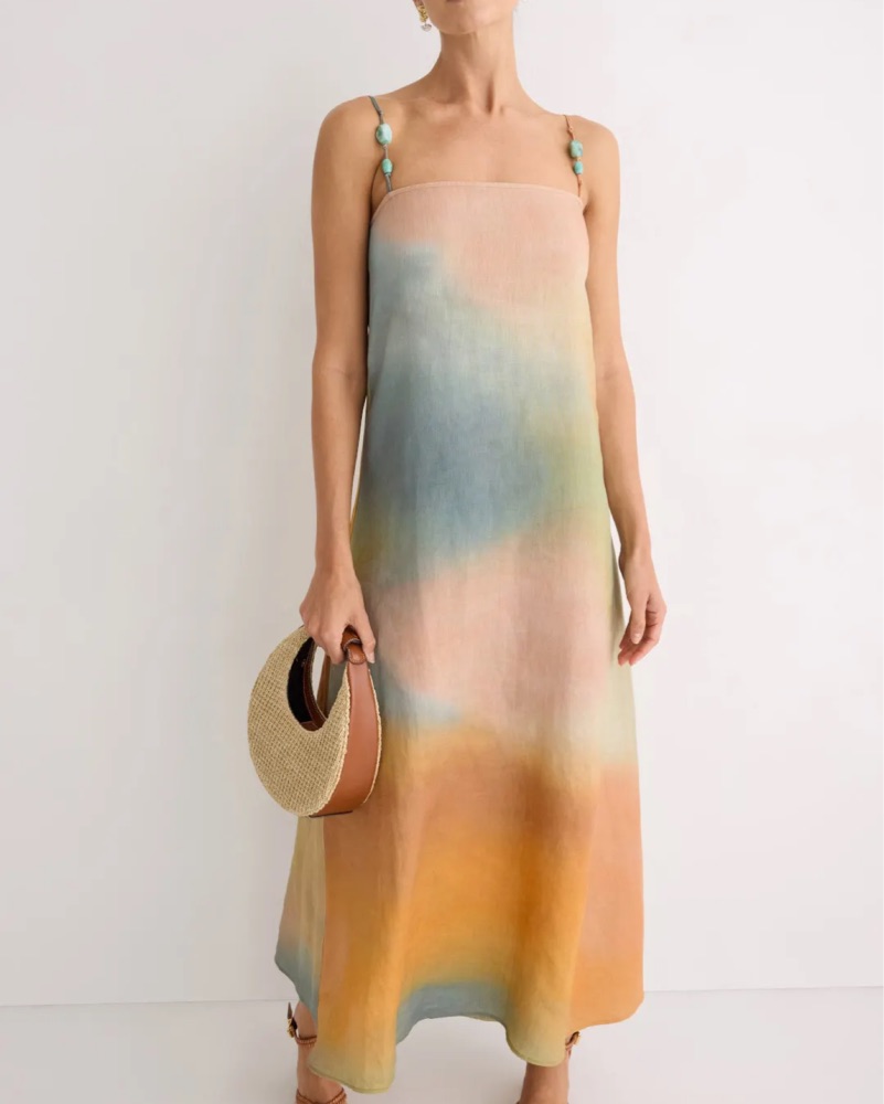 The Laura Linen Dress by Staud features a minimalist, clean design with a flattering silhouette, perfect for warm weather occasions. Its classic linen material makes it breathable and comfortable. **Please dry clean before returning, absolutely no washing machine/dryer**
