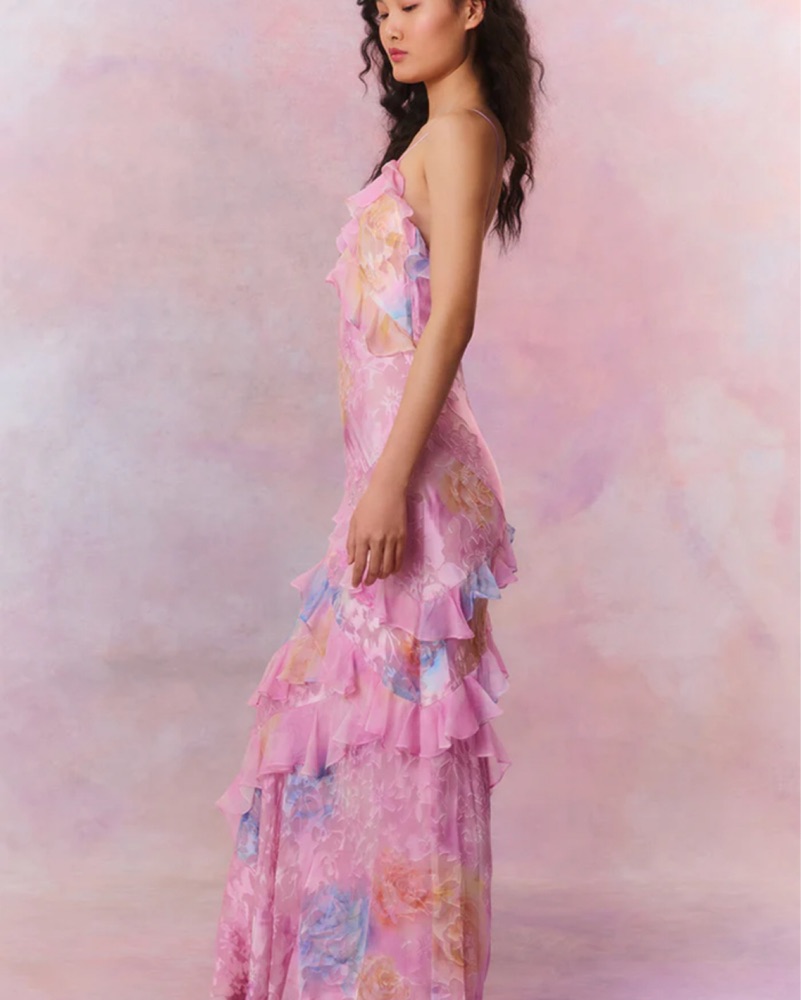 LoveShackFancy Floral Chiffon Maxi Dress by LoveShackFancy - Pickle