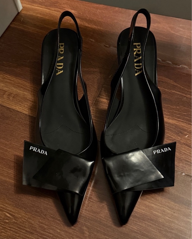 These Prada patent leather slingback pumps are the epitome of sophistication. Pair them with a little black dress for an elegant night out. Dupe