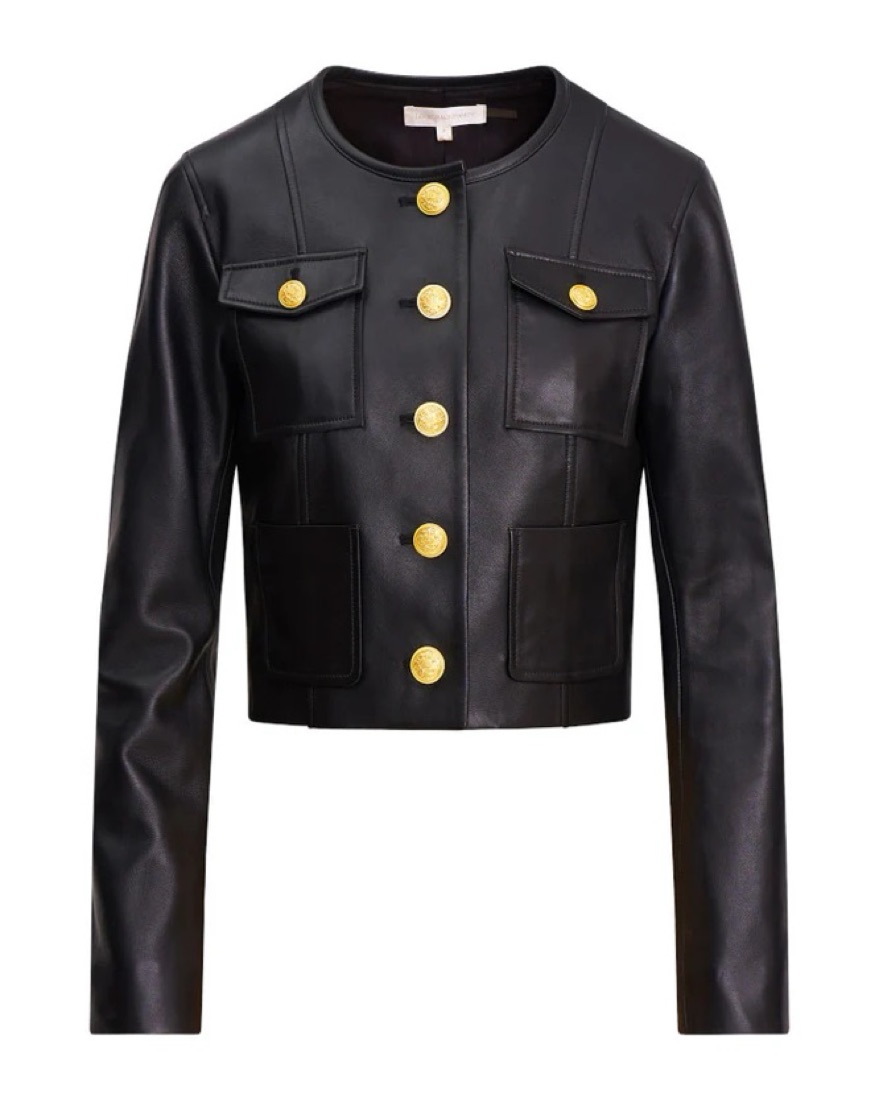 LoveShackFancy Xander Leather Jacket by LoveShackFancy - Pickle