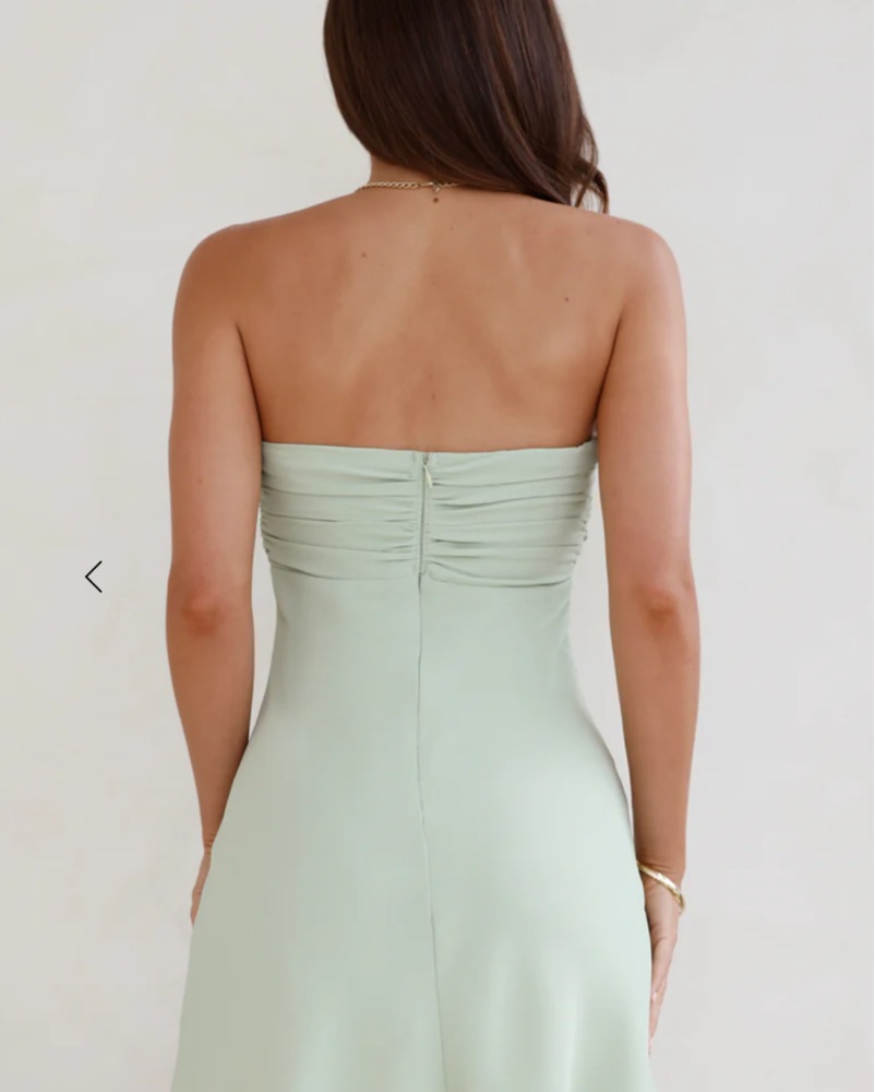 Hello Molly light green strapless mini dress. Perfect for formal events!