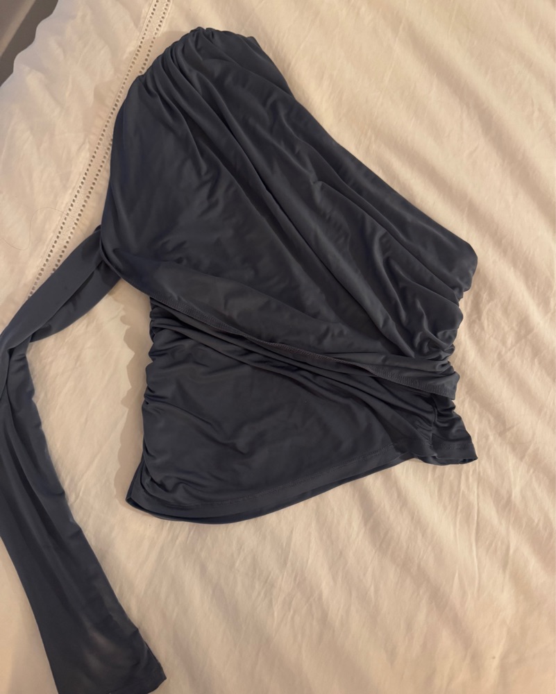 Turn heads on your next girls' night out with the Lovers and Friends Jaya Top in elegant slate. Featuring one-shoulder styling with a foldover detail, and crafted from ruched slinky jersey fabric, that promises to elevate your style.