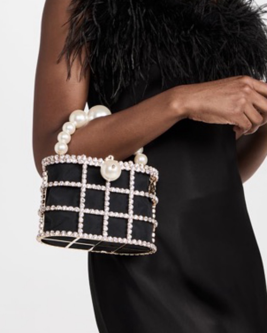 Rosantica holli bag. This bag is stunning in person! Tags: wedding guest, black tie, gala, formal, rehearsal dinner, welcome party, cocktail party, engagement party, Zimmermann, Anna October, Staud, Cult Gaia, loveshackfancy, A.L.C., Self Portrait, cinq a sept, bec + bridge, Alice and Olivia