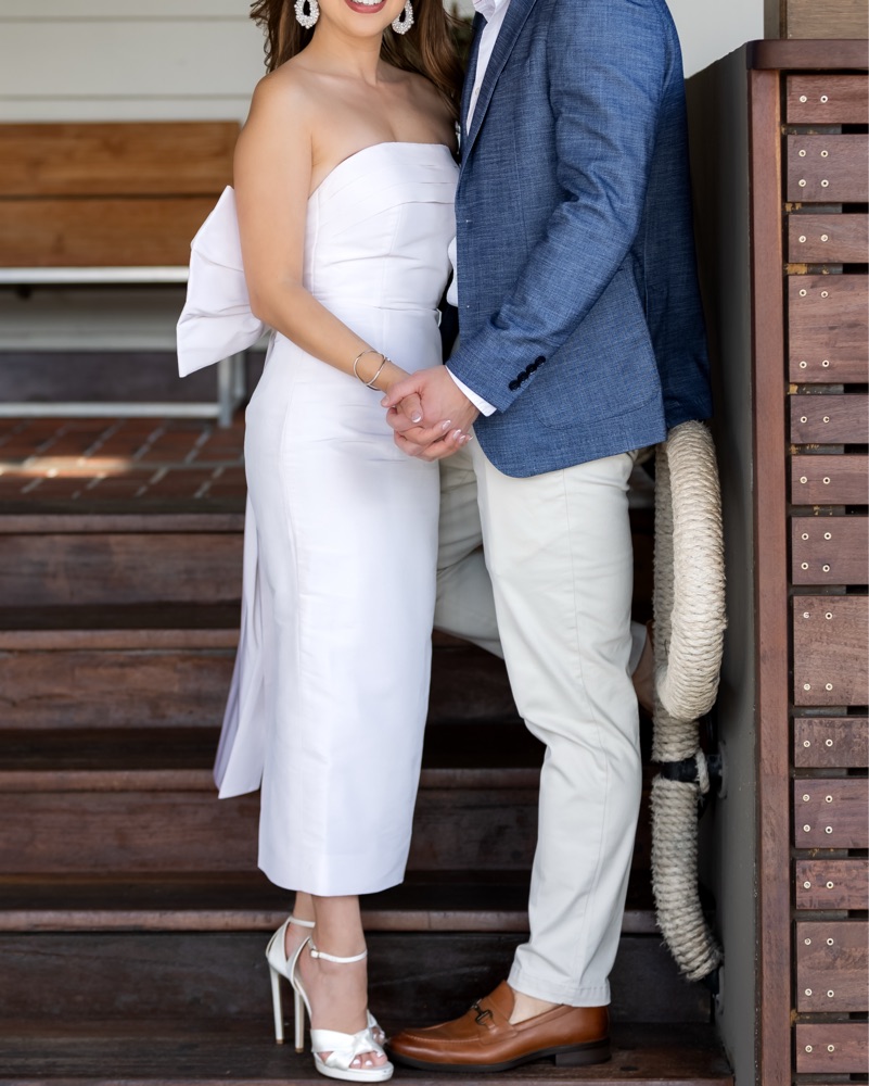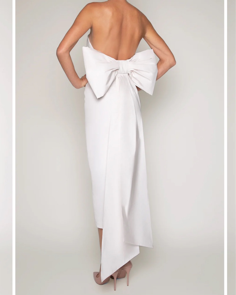• DRESS SAYS SIZE 4 BUT ALTERED TO 2;SEE LAST 3 PICS;BOW HAS CLIPS TO ATTACH TO DRESS; CUPS ADDED. Tags: bridal shower, rehearsal dinner