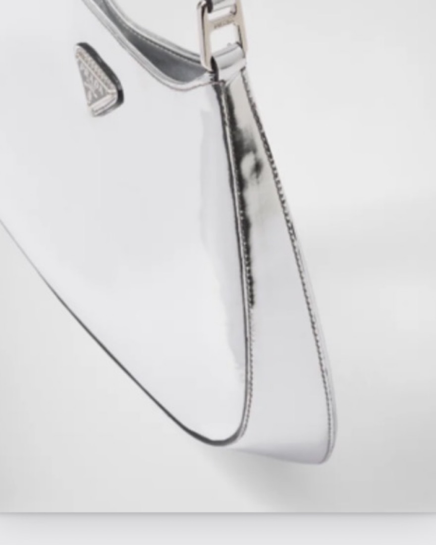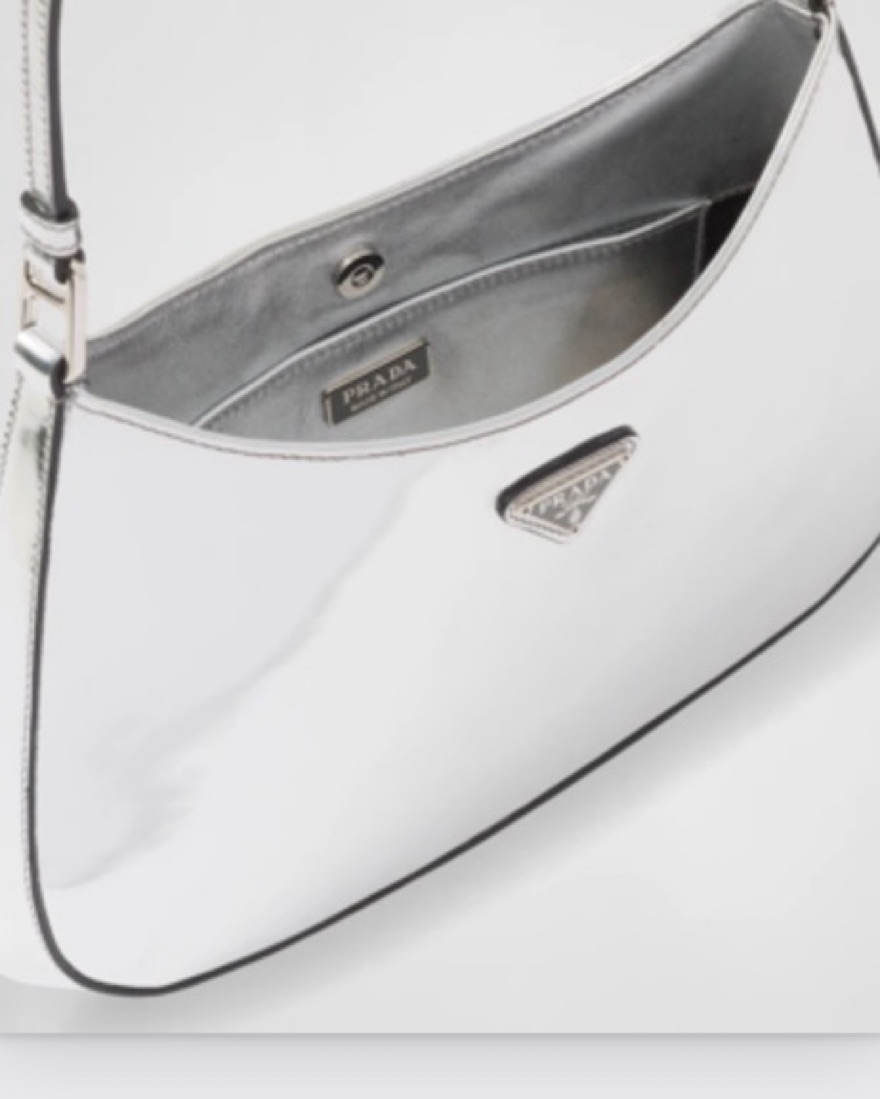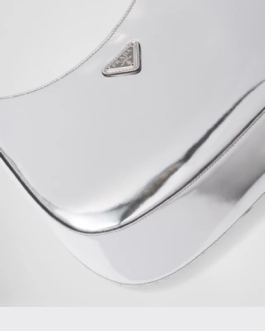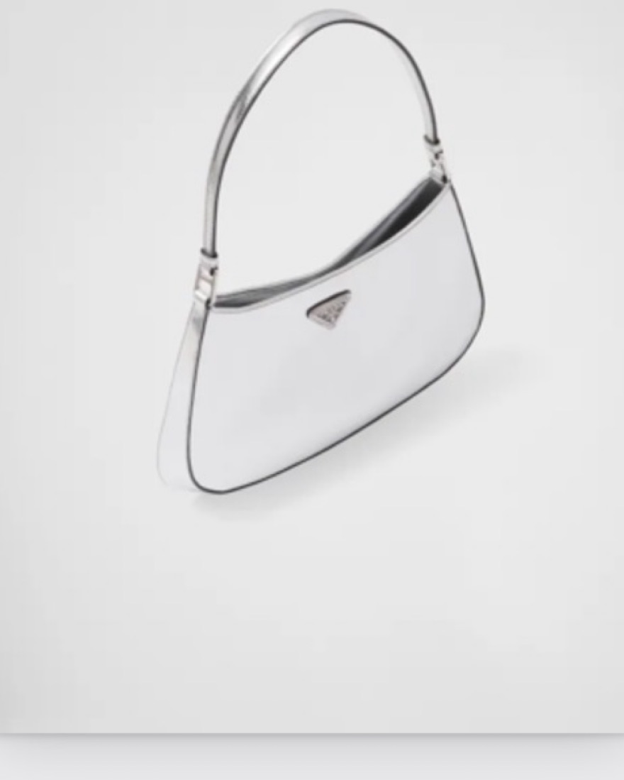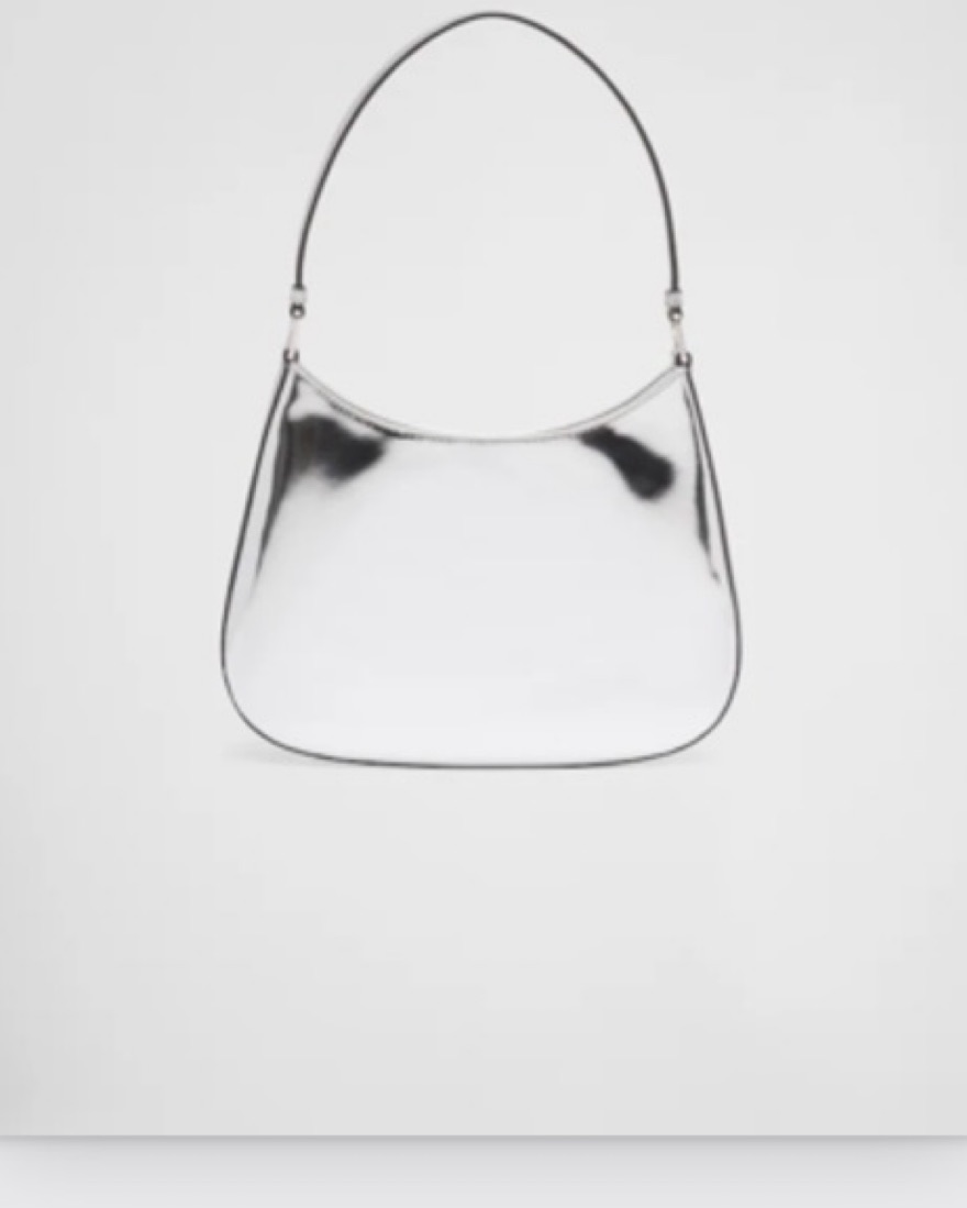 The Prada Cleo bag with sophisticated allure reinterprets an iconic design of the brand from the 1990's. Sleek curved lines emphasized by the particular construction rounded on the bottom and sides give this hobo bag a soft, light look. Brushed leather shoulder bag. Silver color sold out.