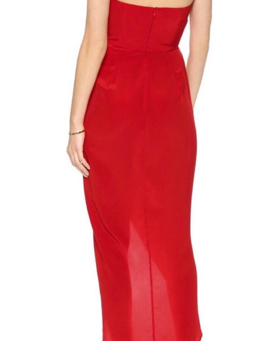 A stunning, form-fitting 100% luxurious silk red dress with a plunging neckline and a daring thigh-high slit. Perfect for a night of elegance and sophistication. Brand new worn for a few hours.