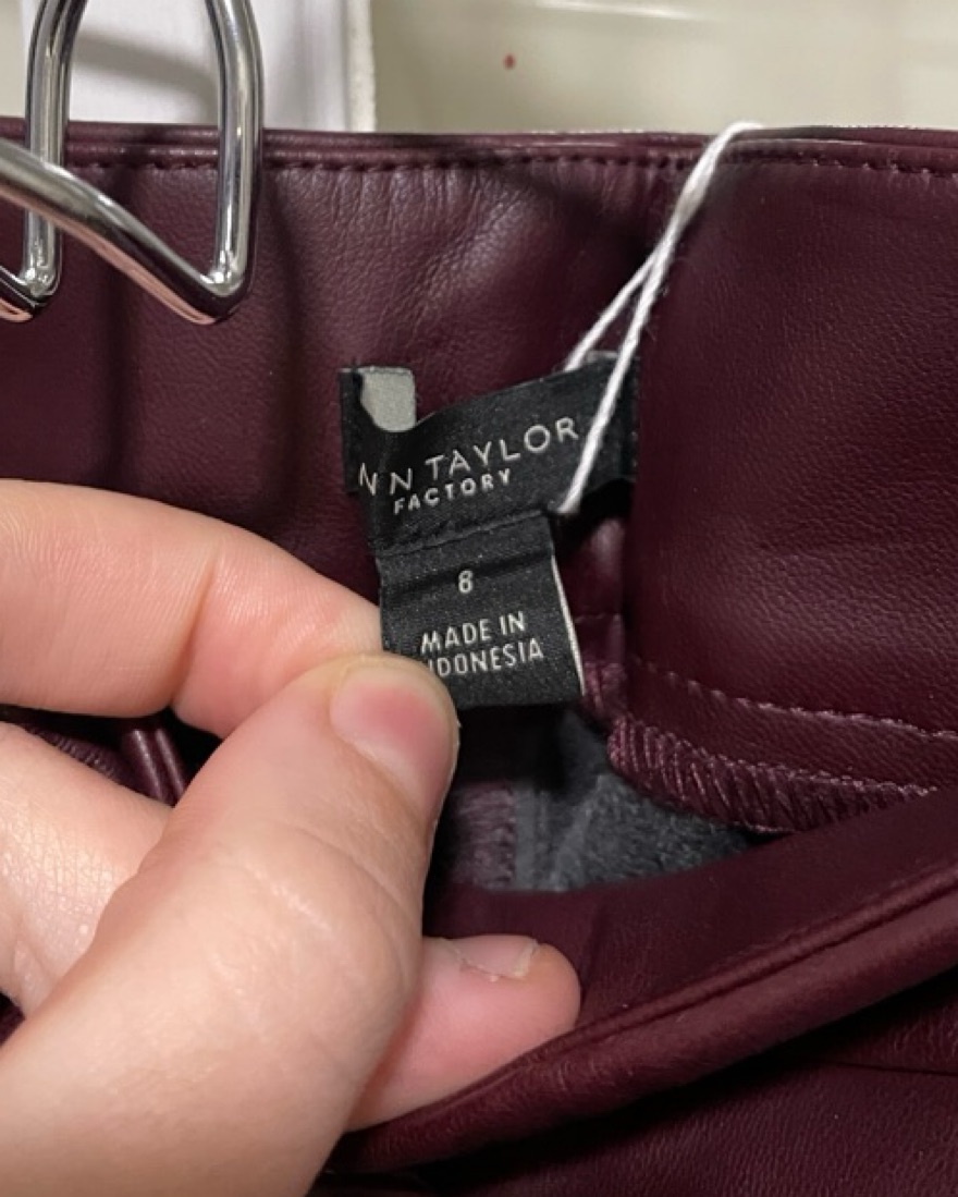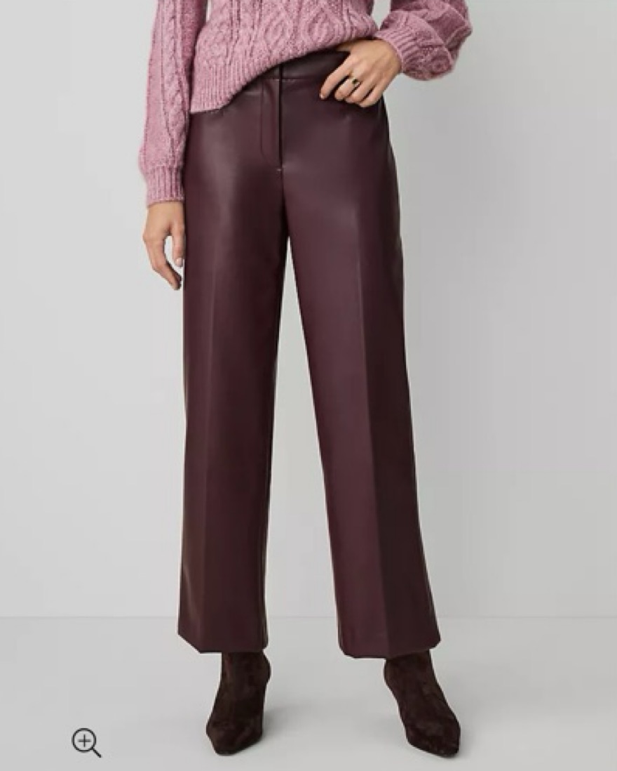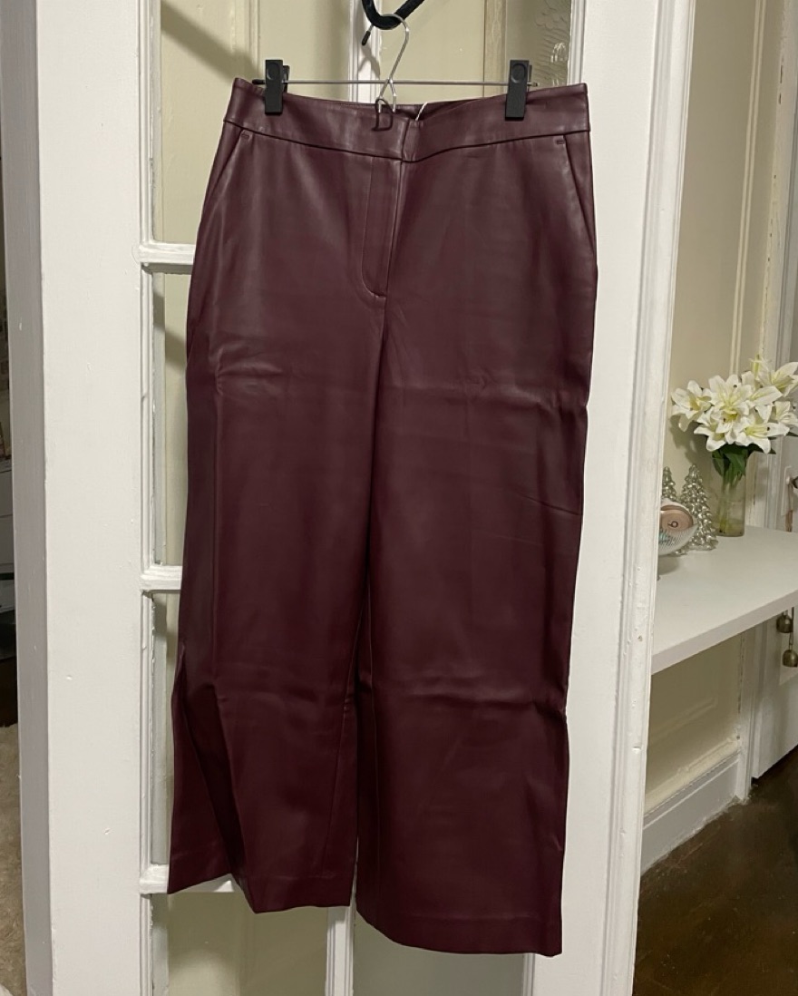 Burgundy Faux Leather Tailored Pants by Ann Taylor - Pickle