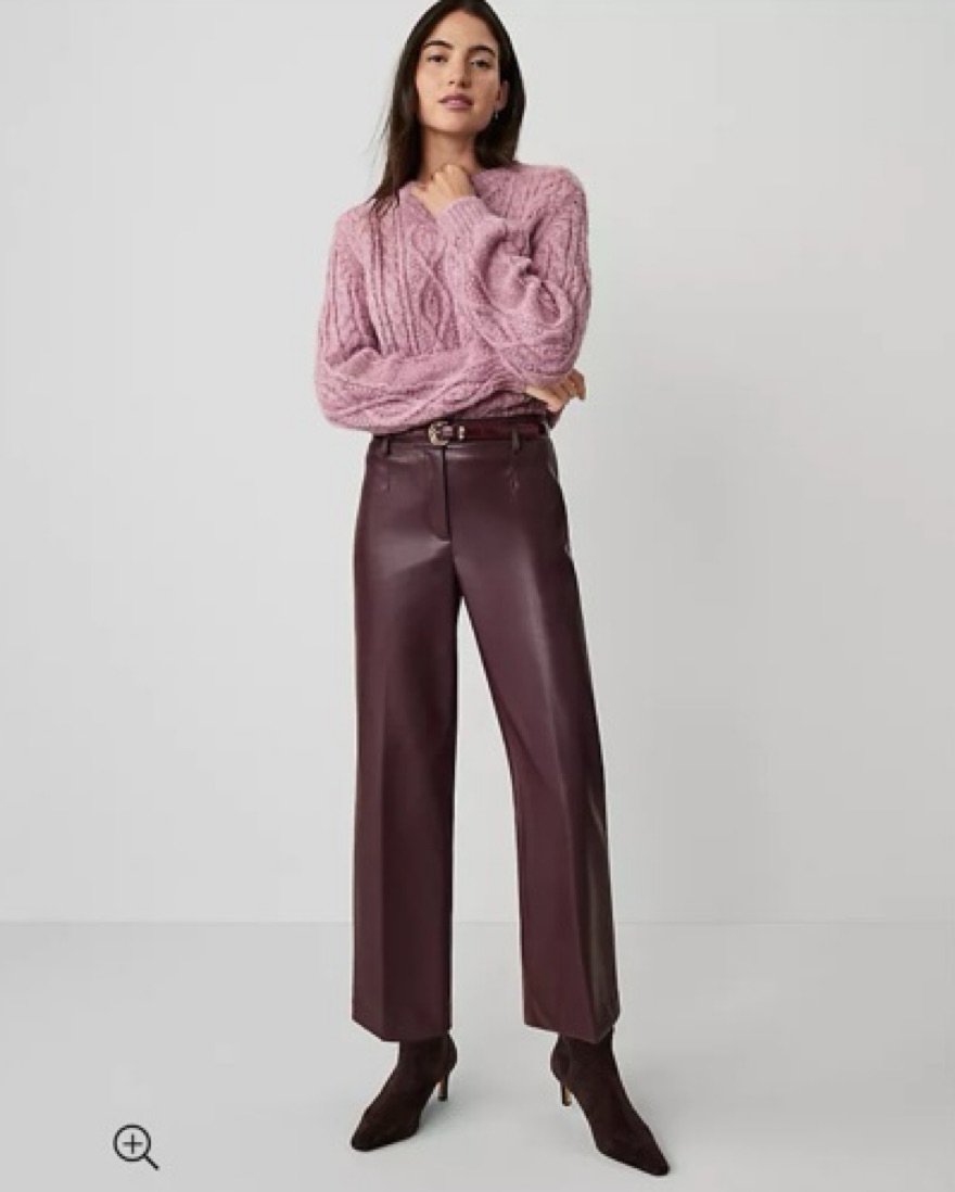 These chic burgundy faux leather pants are perfect for creating a sophisticated and edgy look. Wear them to the office or a night out for a polished yet bold ensemble.