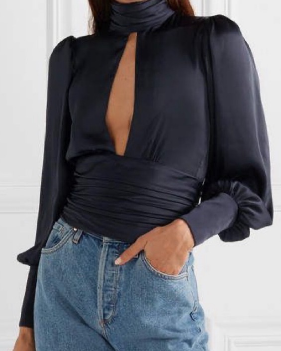 Stunning sold out Orseund Iris silk top. Has a high neck with button closures and an elegant open back. Originally retails for $600. Dry clean only!
