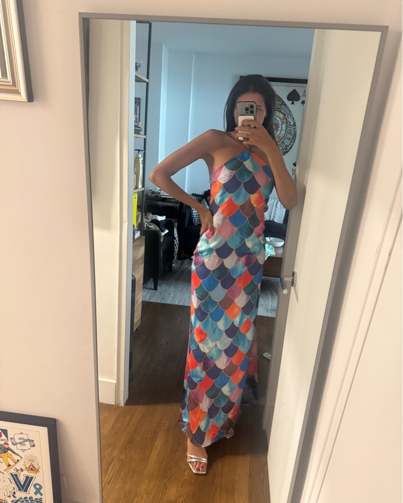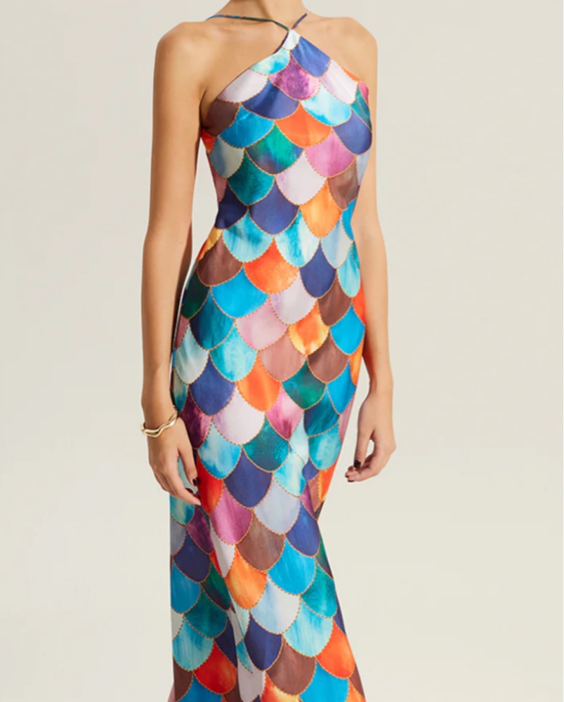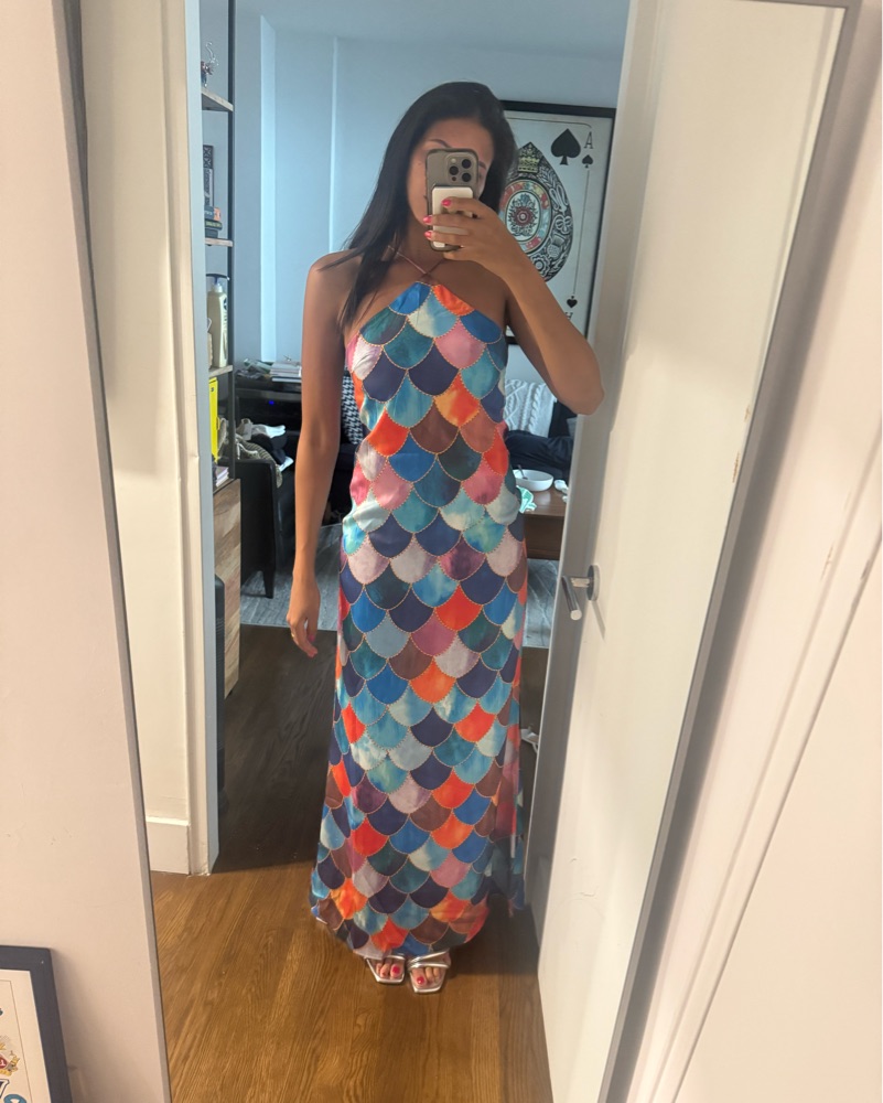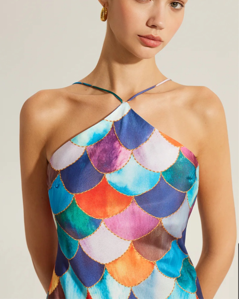 Sashay in style with this eye-catching mermaid scale dress, perfect for a fun night out or a vibrant summer event. Machine wash on delicate cycle & air dry before returning