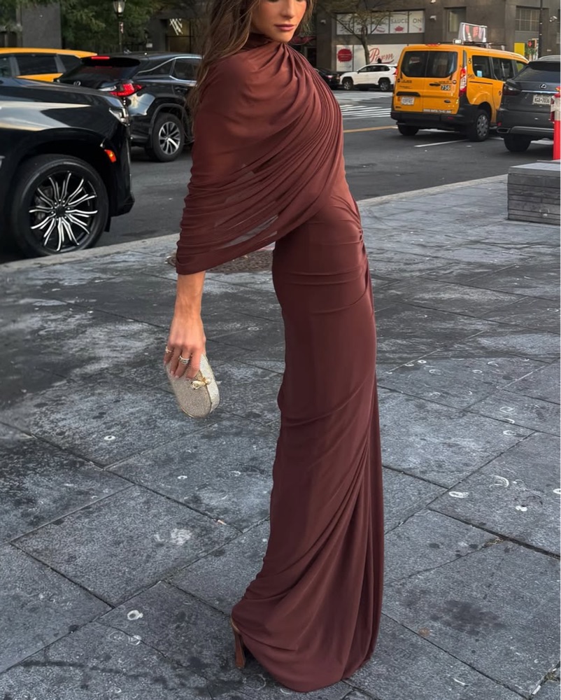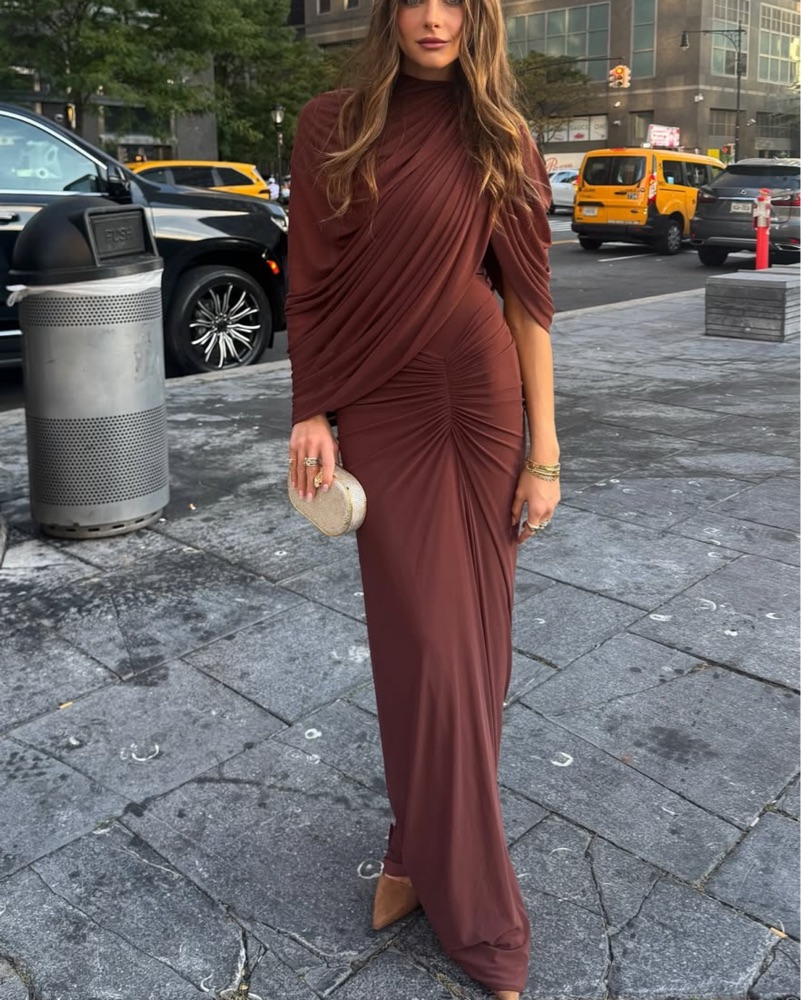 Deme Maxi Ruched Draped Dress by Deme By Gabriella - Pickle