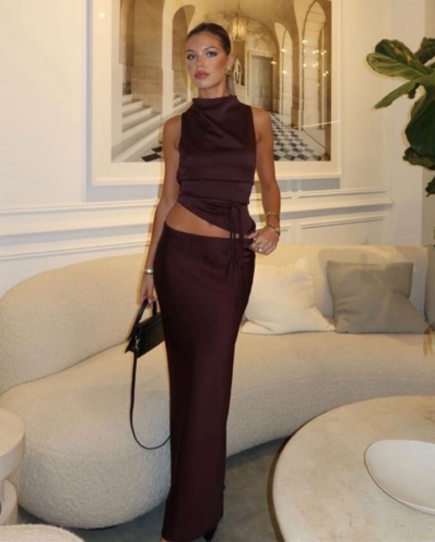 The most stunning matching set. Top is a size 4, but fits like a 2. Skirt is a size 2 (elastic waistband) so flattering my favorite piece in my closet. Can rent out the pieces individually just message me.