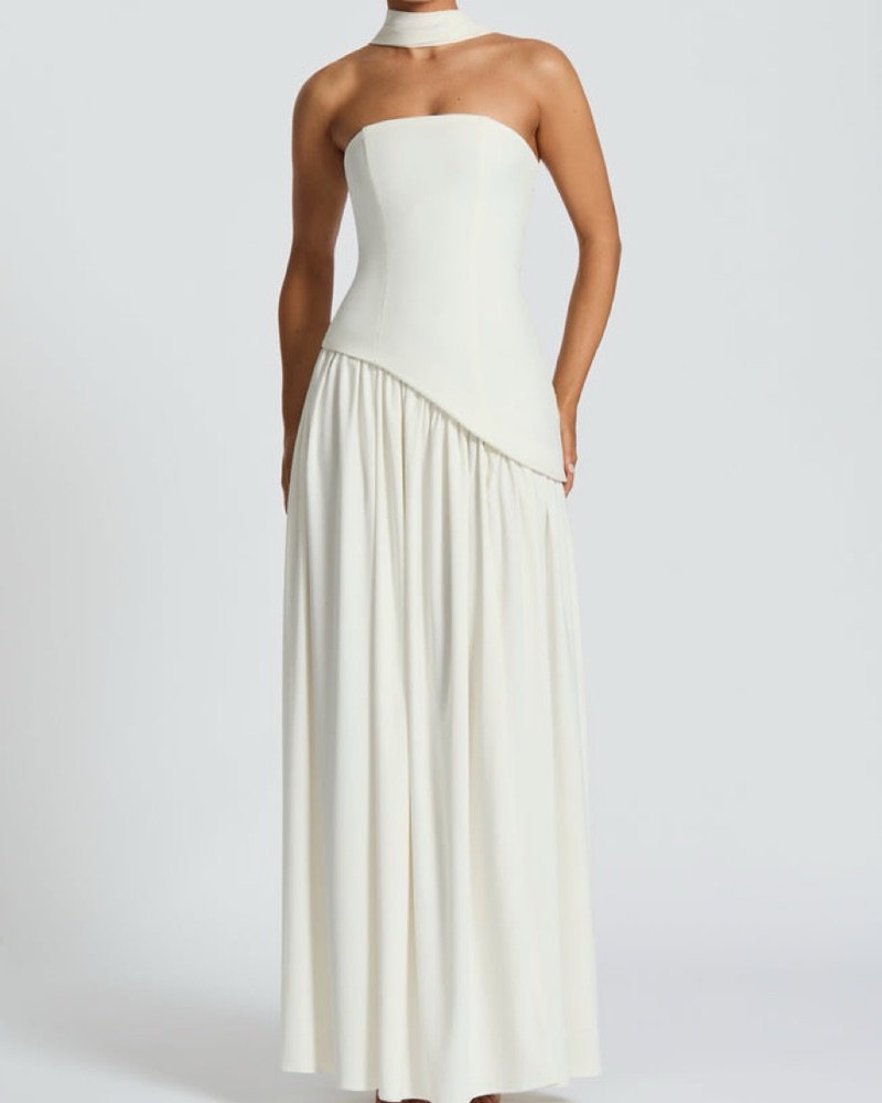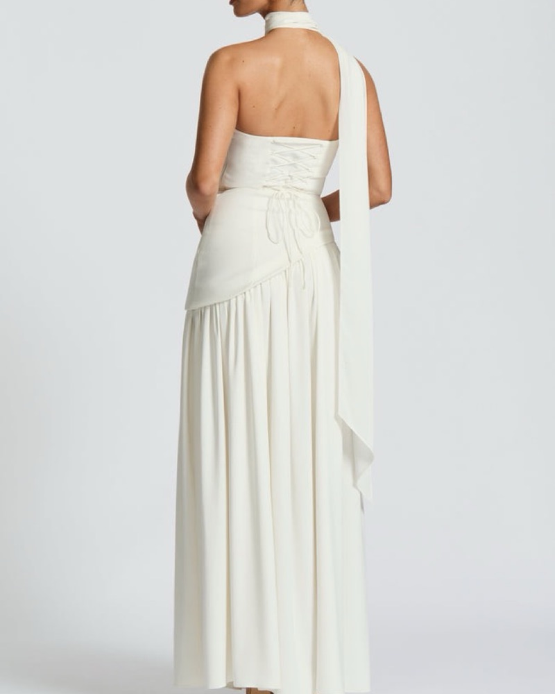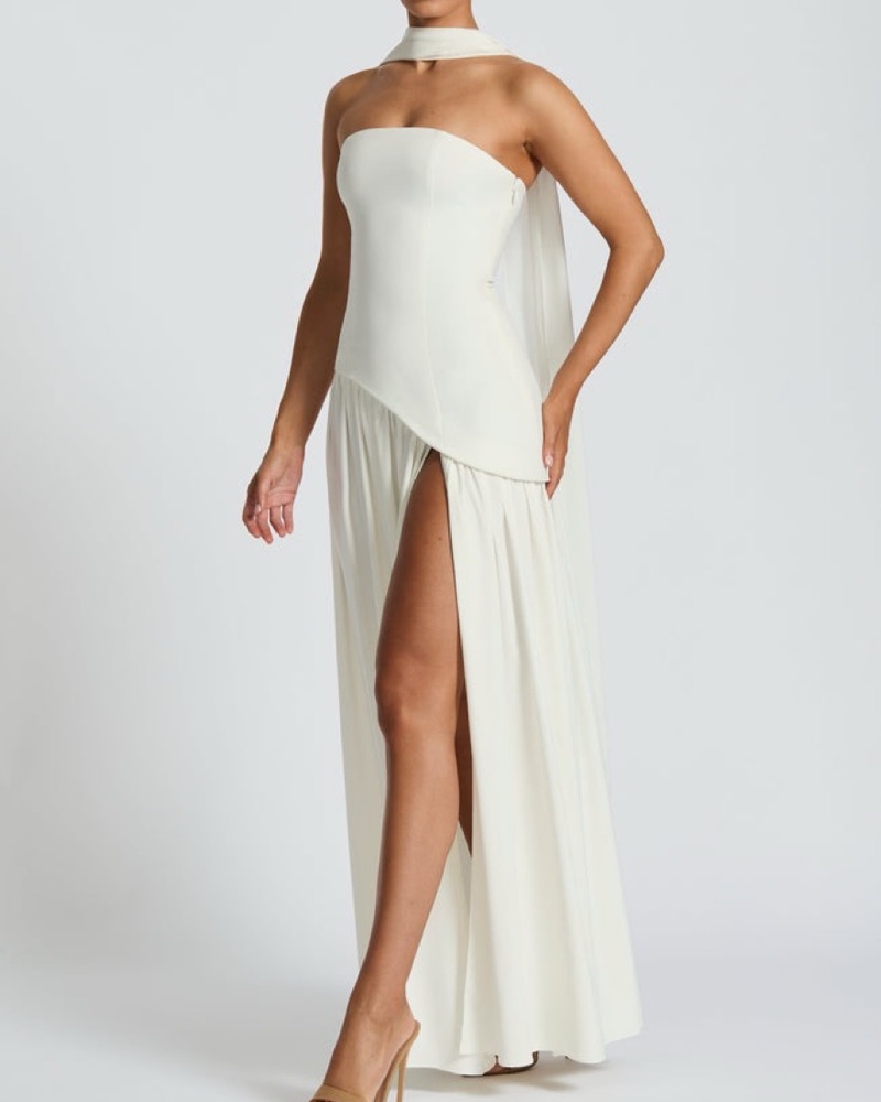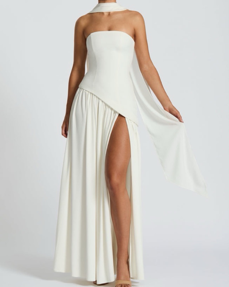 Gorgeous white corset dress. Comes with super classy matching scarf. Perfect for an elevated bridal look. I wore this for my engagement photos! Fits like a small/medium.