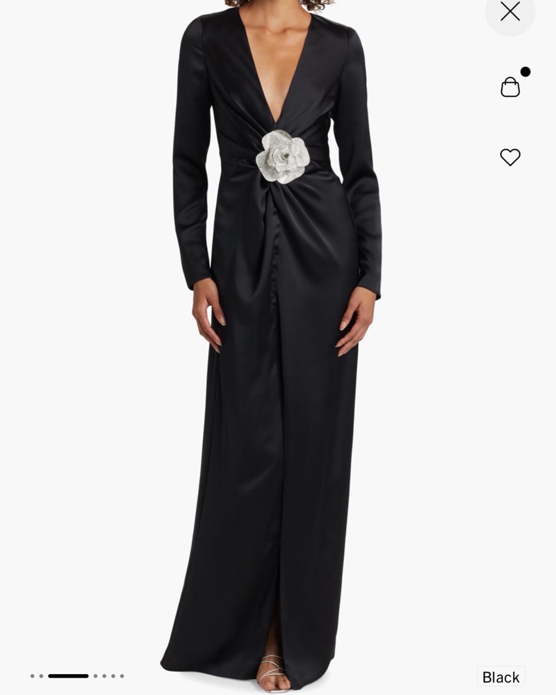 Ramy Brook Daryl V-Neck Gown. Size 4 // true to size. Navy in color (black version just to show what it looks like on) Full length and no tailoring - worn once. Silver crystal flower in middle of deep v - amazing black tie wedding gown.