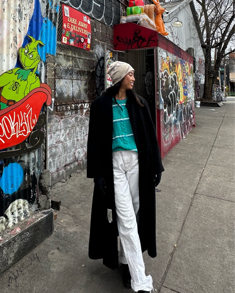 Fully lined wool coat with 2 front pockets, single button closure, & rounded lapel. Pictured on 5’8”, XS top wearer- fits oversized on me with room for sweaters. No size tag, likely large