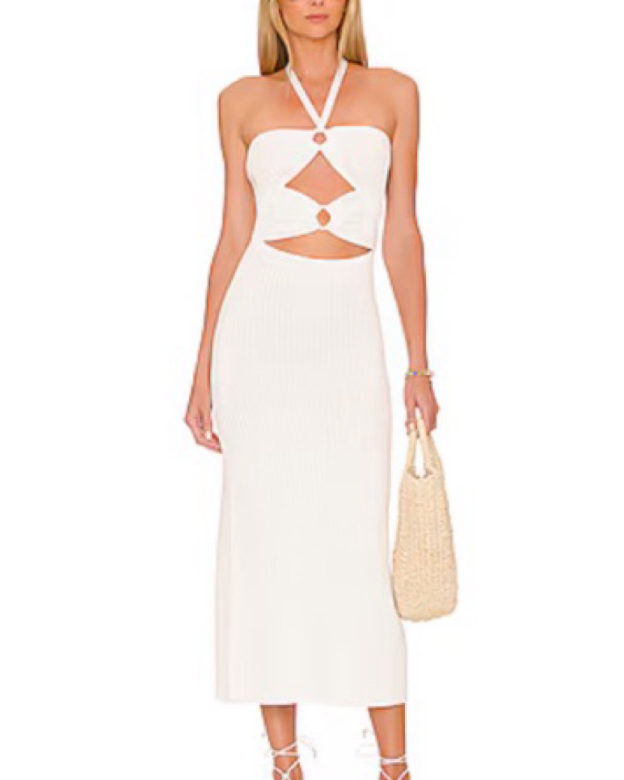 Sold out everywhere! Has detachable halter strap. Very tight and flattering! Perfect for vacation, graduation, summer, spring, sorority, beach. Revolve dress