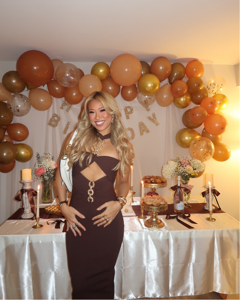 - STUNNING cult Gaia dress with gold medal detail and chocolate brown coloring