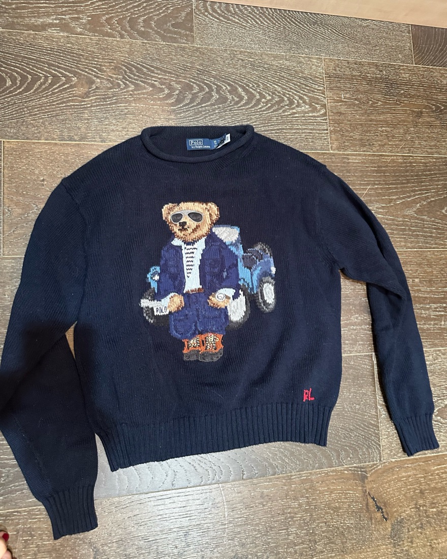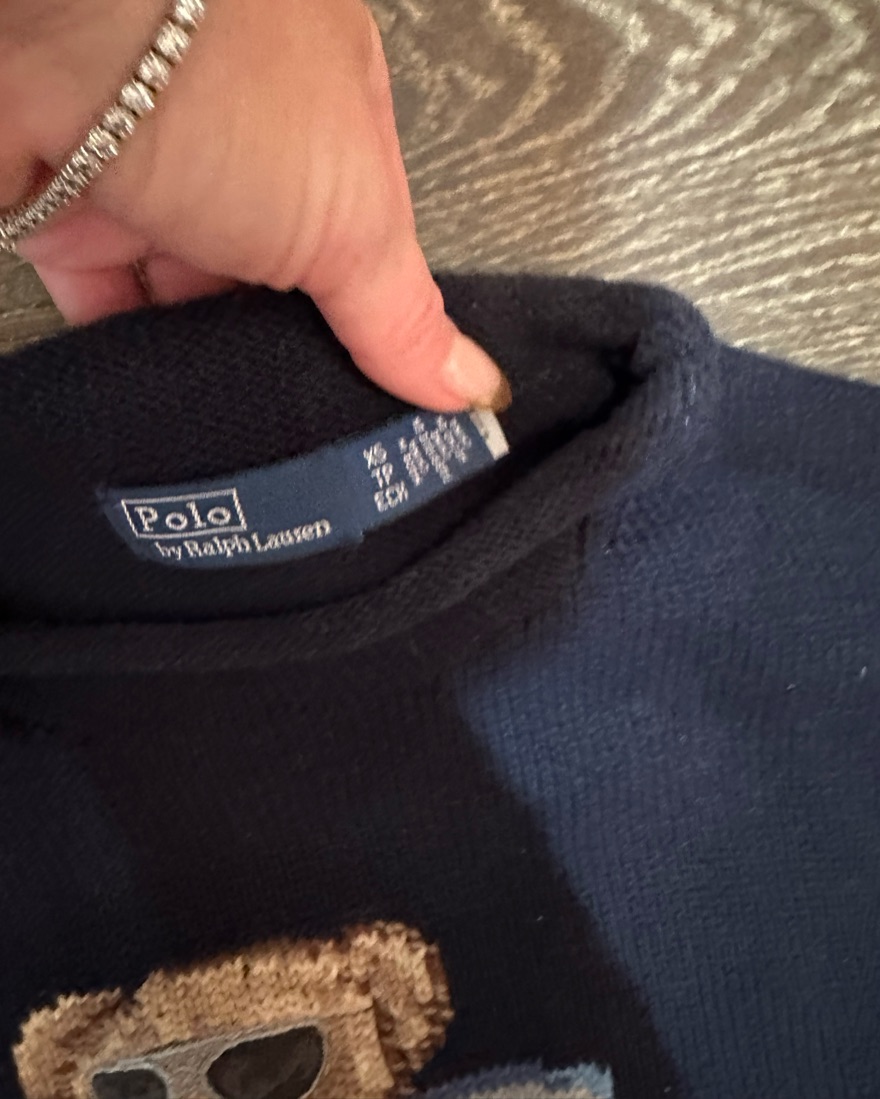 Navy XS polo Ralph lauren bear sweater be careful with jewelry do not wash